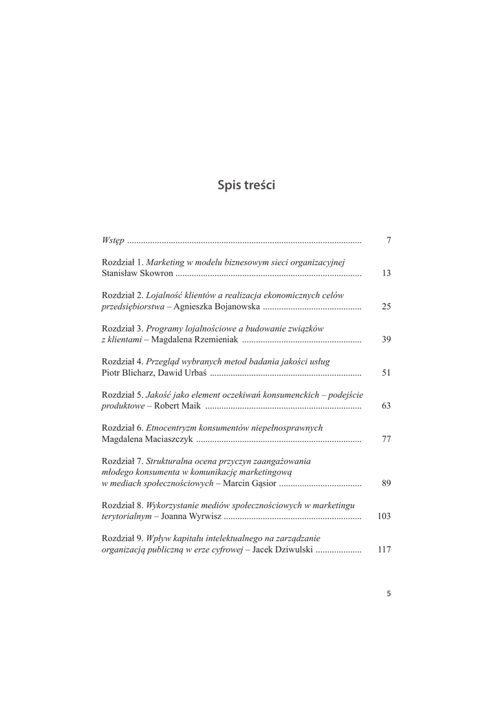 Spis treści :VWĊS 5R]G]LDá0DUNHWLQJZPRGHOXEL]QHVRZ\PVLHFLRUJDQL]DF\MQHM 6WDQLVáDZ6NRZURQ................................................................................. 5R]G]LDá/RMDOQRĞüNOLHQWyZDUHDOL]DFMDHNRQRPLF]Q\FKFHOyZ SU]HGVLĊELRUVWZD±$JQLHV]ND%RMDQRZVND 5R]G]LDá3URJUDP\ORMDOQRĞFLRZHDEXGRZDQLH]ZLą]NyZ ]NOLHQWDPL±0DJGDOHQD5]HPLHQLDN 5R]G]LDá3U]HJOąGZ\EUDQ\FKPHWRGEDGDQLDMDNRĞFLXVáXJ 3LRWU%OLFKDU]'DZLG8UEDĞ 5R]G]LDá-DNRĞüMDNRHOHPHQWRF]HNLZDĔNRQVXPHQFNLFK±SRGHMĞFLH SURGXNWRZH±5REHUW0DLN 5R]G]LDá(WQRFHQWU\]PNRQVXPHQWyZQLHSHáQRVSUDZQ\FK 0DJGDOHQD0DFLDV]F]\N 5R]G]LDá6WUXNWXUDOQDRFHQDSU]\F]\Q]DDQJDĪRZDQLD PáRGHJRNRQVXPHQWDZNRPXQLNDFMĊPDUNHWLQJRZą ZPHGLDFKVSRáHF]QRĞFLRZ\FK±0DUFLQ*ąVLRU 5R]G]LDá:\NRU]\VWDQLHPHGLyZVSRáHF]QRĞFLRZ\FKZPDUNHWLQJX WHU\WRULDOQ\P±-RDQQD:\UZLV]............................................................ 5R]G]LDá:Sá\ZNDSLWDáXLQWHOHNWXDOQHJRQD]DU]ąG]DQLH RUJDQL]DFMąSXEOLF]QąZHU]HF\IURZHM±-DFHN']LZXOVNL 5 Spis treści 5R]G]LDá.RPHUFMDOL]DFMDZLHG]\LWUDQVIHUWHFKQRORJLLZSURFHVDFK LQQRZDF\MQ\FK±,ZRQDàDG]LDN*U]HJRU]*OLV]F]\ĔVNL =DNRĔF]HQLH %LEOLRJUD¿D 1RW\R$XWRUDFK 6
