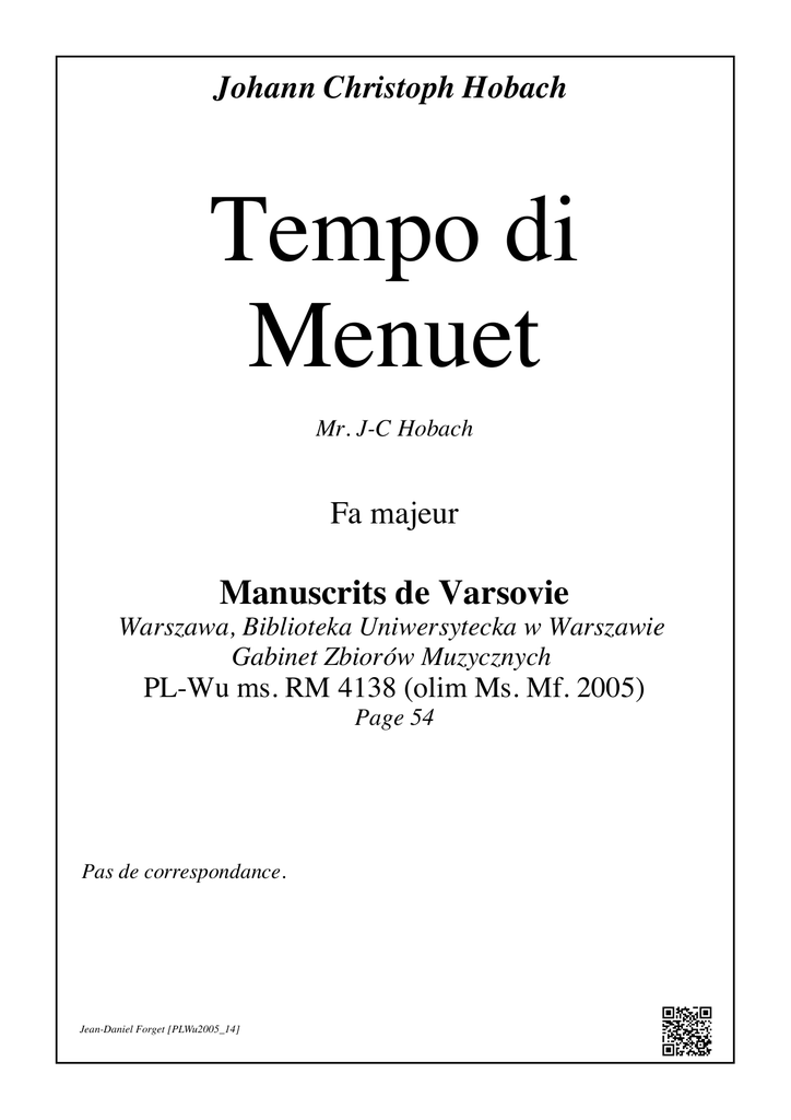 Ms. Varsovie PL-Wu2005, Johann Christoph Hobach, Tempo di Menuet, en Fa majeur. [PLWu2005_14] Page 1