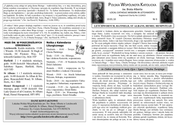 Biuletyn nr 6 z 10.01.2016 - Polska Parafia Św. Brata Alberta w
