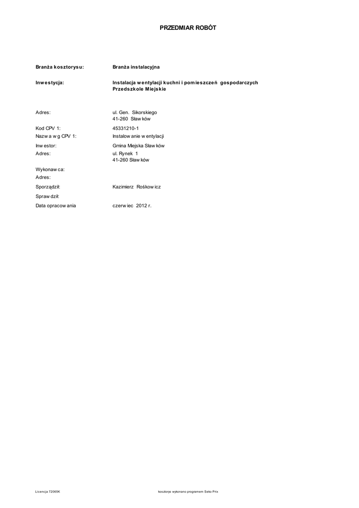 4786 przedmiar wentylacja kuchni