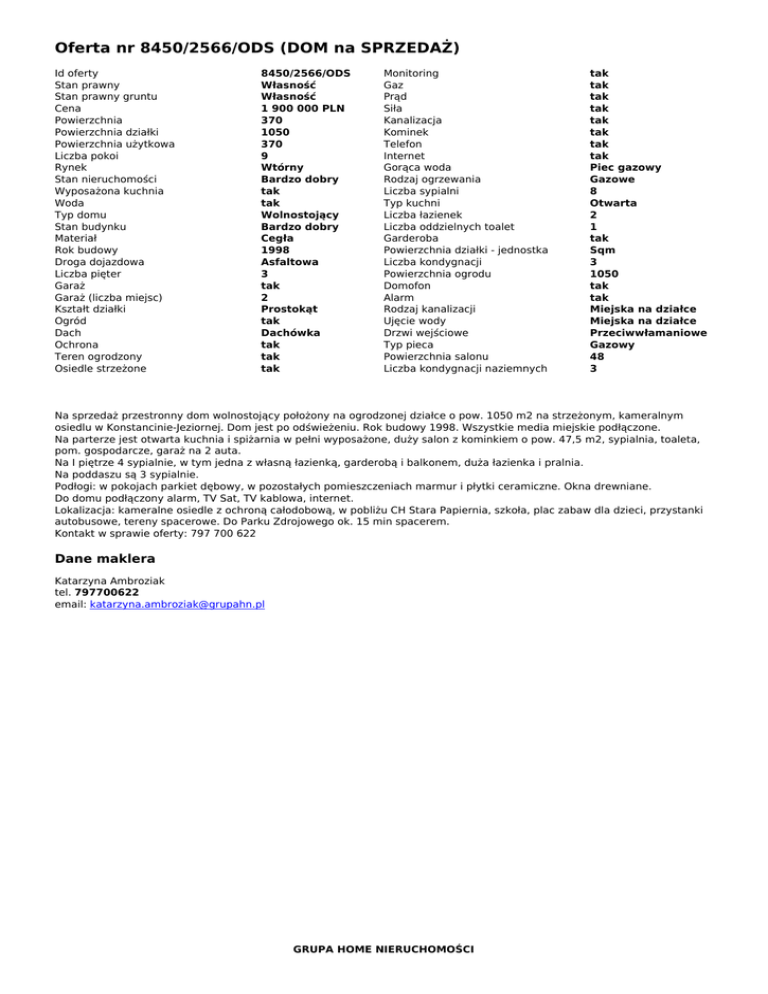 Oferta nr 8450/2566/ODS (DOM na SPRZEDAŻ)