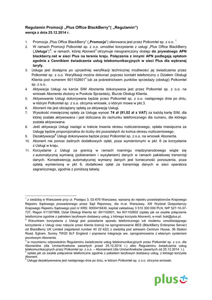 Regulamin Promocji Plus Office BlackBerry