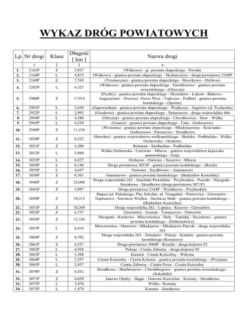 wykaz dróg powiatowych