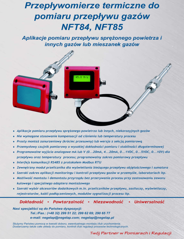 Przepływomierze termiczne do pomiaru przepływu gazów NFT84