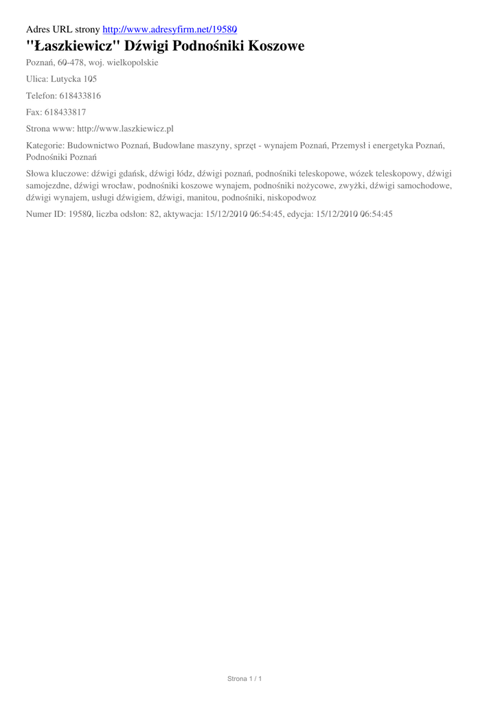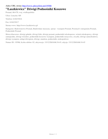 "Laszkiewicz" Dzwigi Podnosniki Koszowe, Poznan