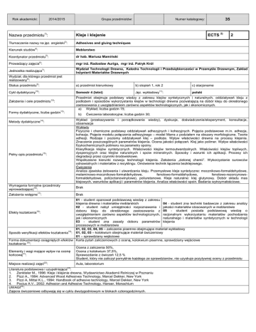 35 Nazwa przedmiotu1): Kleje i klejenie ECTS 2) 2
