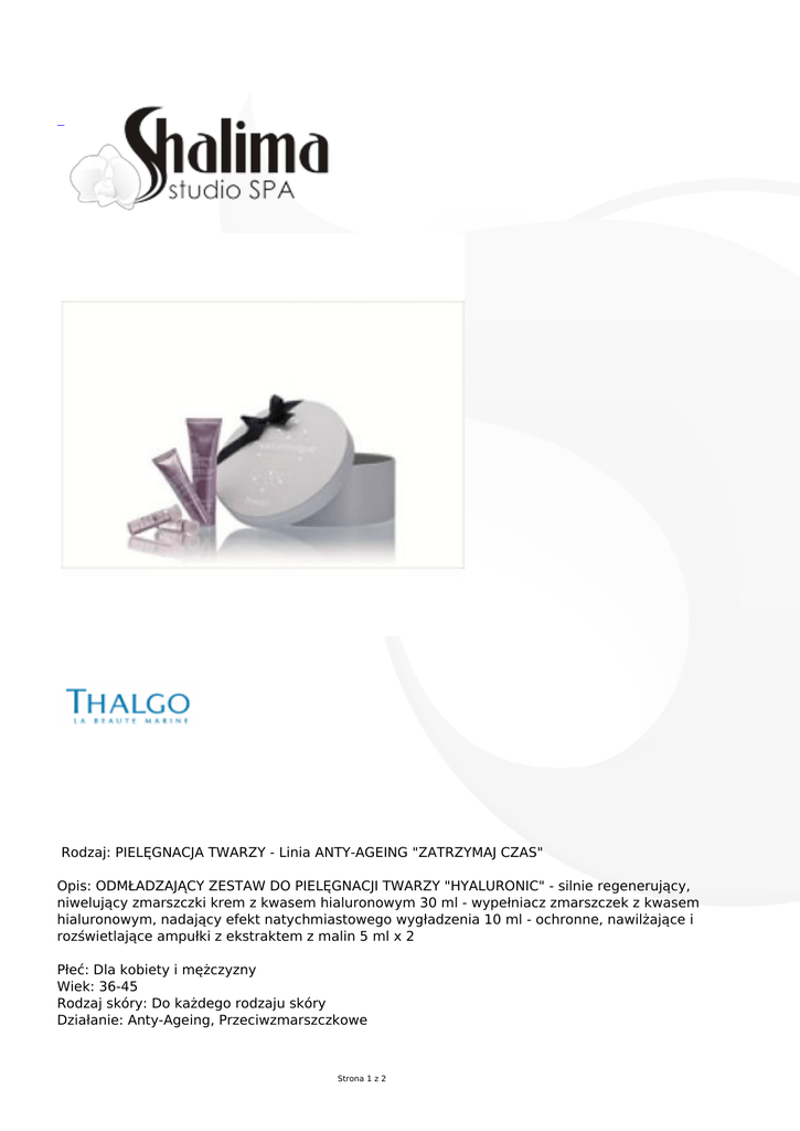 Rodzaj: PIELĘGNACJA TWARZY - Linia ANTY-AGEING "ZATRZYMAJ CZAS" Opis: ODMŁADZAJĄCY ZESTAW DO PIELĘGNACJI TWARZY "HYALURONIC" - silnie regenerujący, niwelujący zmarszczki krem z kwasem hialuronowym 30 ml - wypełniacz zmarszczek z kwasem hialuronowym, nadający efekt natychmiastowego wygładzenia 10 ml - ochronne, nawilżające i rozświetlające ampułki z ekstraktem z malin 5 ml x 2 Płeć: Dla kobiety i mężczyzny Wiek: 36-45 Rodzaj skóry: Do każdego rodzaju skóry Działanie: Anty-Ageing, Przeciwzmarszczkowe Strona 1 z 2 Kategoria: Zestaw Strona 2 z 2