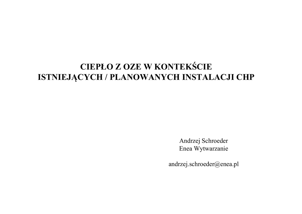 ciepło z oze w kontekście istniejących / planowanych instalacji chp