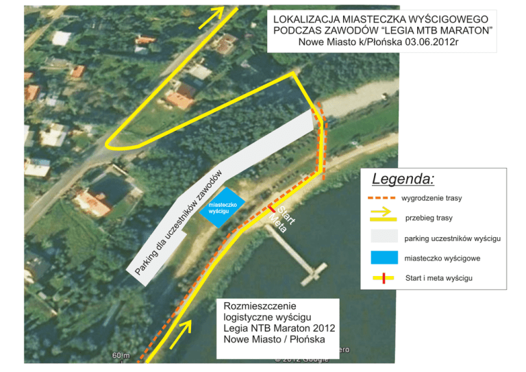 w LOKALIZACJA MIASTECZKA WYŒCIGOWEGO PODCZAS ZAWODÓW “LEGIA MTB MARATON” Nowe Miasto k/P³oñska 03.06.2012r przebieg trasy parking uczestników wyœcigu Pa rk ing dla uc ze stn ik wygrodzenie trasy miasteczko wyœcigu t ar St eta M ów za wo dó Legenda: miasteczko wyœcigowe Start i meta wyœcigu Rozmieszczenie logistyczne wyœcigu Legia NTB Maraton 2012 Nowe Miasto / P³oñska