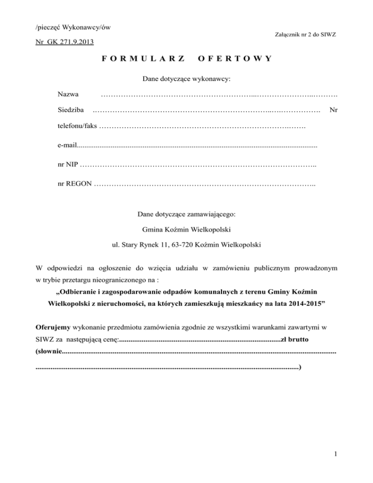 Załącznik nr 2 - bip - koźmin wielkopolski