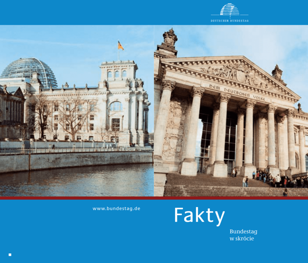 w w w.bundestag.de Fakty Bundestag w skrócie Dzielnica parlamentarna w Berlinie (stan: maj 2006) Das Parlamentsviertel in Berlin (Stand: Oktober 2005) Humboldthafen Alexanderufer 15 1 Friedrich- e aß Str Ufer 1 ße nstra man Schu n tLis Alt-Mo abit Spree n Ko 8 Platz der Republik Scheidemannstraße 2 4 1 Werftstraß e 4 5 6 straße Friedrich- 13 Behren- 14 Dorotheenstraße 93 Całodzienne przedszkole Niemieckiego Bundestagu, Dorotheenstraße 97/ Otto-von-Bismarck-Allee 2 Dom im. Marie-ElisabethJakob-Kaiser-Haus, Lüders, Adele-SchreiberKrieger-Str. 1 Dorotheenstraße 100–101 Kindertagesstätte, Dom im. Paula Löbe, Konrad-Adenauer-Str. 1 Otto-von-Bismarck-Allee 2 Wjazd/wyjazd do/z systemu Luisenstraße 32–34 pomieszczeń podziemnych Bundestagu Luisenstraße 35 prac budowlanych prawPaul-Löbe-Haus dopodobnie pod koniec 2007 r.) Konrad-Adenauer-Straße Francji 6 11 15 Ambasada Schadowstraße Wielkiej Brytanii 1216 Ambasada Schadowstraße 12–13 str. Rosji Schiffbauerdamm 13, 17 1317 Ambasada straße Brandenburska 41 Schiffbauerdamm 1418 Brama Unter den Linden 50 Główny w Berlinie 1519 Dworzec 20 3 Potsdamer Platz Dom im. Jakoba Kaisera, Dorotheenstraße 88 Dorotheenstrasse 100–101 USA (ukończenie Neustädtische Kirchstraße 15 1013 Ambasada e straß e straß elmWilh Behren- 12 9 8 10 nden Unter den Li Pariser Platz 10 Niemiecka Katedra przy Deutscher Dom, Gendarmenmarkt 1 (wystaAm Gendarmenmarkt wa historyczna) Kanclerski Marie-Elisabeth-Lüders-Haus 9 12 Urząd straße ni Straße des 17. Ju 8 11 11 14 Platz des 18. März Kleiner Stern 7 6 7 Friedrich- John-Foster-Dul les-Allee Reichstagspräsidentenpalais Wilhelmstraße 65–66 6 Wilhelm- 16 5 straße . . tr -S er au en Ad da r 3 Były Pałac Prezydenta Reichstagu Bunsenstraße 2 7 ße stra ill yBr an dt -S tr 9 llee les-A Dul ter-Fos John 4 5 mm erda fbau Schif r tagufe Reichs W Budynek Reichstagu – sektor Ehemaliges obrad plenarnych 1 (Historische Ausstellung) ße tstra hard Rein Un te rb au m - hric ed Fri St ra ße ide trech Alb al Inv 2 2 3 Plenarbereich Reichstagsgebäude 1621 (Lehrter Bahnhof) Unter den Linden 62–68 Sala Kongresowa – Dom UnterŚwiata den Linden 71 Kultur 22 Wilhelmstraße 60 23 UES Einfahrt/Ausfahrt 24 Bundeskanzleramt 1 Spis treści Dom otwarty Niemiecki Bundestag – domem otwartym – 1 Niemiecki Bundestag jest sercem naszej demokracji. „Narodowi niemieckiemu” – napisane jest nad zachodnim portalem budynku Reichstagu. Zasiadający tutaj deputowa- Czy Państwo wiedzą, że … 4 ni są wybrani przez naród niemiecki i uchwalają ustawy dla wszystkich, którzy żyją w Niemczech. Bundestag jest domem otwartym. Od kiedy jego siedziba znajduje się w Berlinie, stał się on nawet znanym na całym świecie i przyciągającym Zadania Bundestagu 6 tłumy ludzi magnesem. Coraz więcej osób odwiedzających Bundestag korzysta z okazji do bezpośredniego wglądu w działalność parlamentu i popada w zachwyt pod niezapo- Deputowani – wysłannicy narodu 14 mnianym wrażeniem na nowo ukształtowanego budynku Reichstagu. Goście z całego świata nie mogą odmówić sobie wizyty w Bundestagu. Grupy zwiedzających z poszczegól- Wybory do Bundestagu 24 nych okręgów wyborczych, chcący spotkać w Berlinie przy pracy deputowanych ze swoich stron rodzinnych, mieszają się w pracowitą krzątaninę polityków, dziennikarzy i pracowników Bundestagu wokół budynku Reichstagu, nowych Niemiecki Bundestag XVI. kadencji 28 budynków parlamentu, Bramy Brandenburskiej i Urzędu Kanclerskiego. Po zakolach Sprewy, przesuwają się wycieczkowe parowce, na których znajdują się turyści i wycieczkowi- Organy i gremia 30 cze, chcący zajrzeć do serca naszej demokracji. W przypadku każdej wycieczki do Berlina wizyta w Bundestagu należy do najważniejszych punktów programu. I w parlamencie nikt nie musi płacić za bilet wstępu. Pytania i odpowiedzi 34 „Niemiecki Bundestag nie jest jakimś tam Budynki Bundestagu 38 sobie gremium. Bundestag znajduje się w centrum naszego ustroju konsty tucyjnego. Jest on decydującym forum polit ycznym Ważne daty z historii parlamentu 48 narodu.” Norbert Lammert prezydent Bundestagu Serwis i informacje dla zwiedzających 52 Niemiecki Bundestag Dom otwarty Niemiecki Bundestag jest symbolem przejrzystości i otwartości w demokracji parlamentarnej, gwarantującej wszystkim obywatelom równouprawniony udział w życiu politycznym. Otwartość jest częścią demokracji jak powietrze, którym oddychamy. Demokracja nie wyklucza żadnych mniejszości i nieustannie umożliwia obywatelom wgląd w parlamentarne procesy decyzyjne. Również ten fakt czyni ją atrakcyjną dla wielu ludzi na całym świecie. Ta podstawowa zasada demokracji uwzględniona została przy ukształtowaniu na nowo berlińskiej dzielnicy parZwiedzający pod lamentarnej. Podczas przechadzki wzdłuż budynków kopułą Bundestagu zwiedzający mogą poprzez nowoczesne (zdjęcie górne) szklane fasady spoglądać na biurka niektórych spośród i przed wejściem około 6.000 osób (deputowanych i ich współpracow- przy portalu ników, pracowników administracji i współpracowników zachodnim (zdję- frakcji politycznych) pracujących w Bundestagu. cie dolne). Nowoczesny parlament w historycznej szacie: zewnętrzny kształt budynku Reichstagu nie został zmieniony. A jednak zintegrowane zostały z nim nowoczesne elementy, stara architektura łączy się z futurystycznie oddziaływającymi formami, w ramach nowej harmonii uzupełniają się żartobliwość i trzeźwa funkcjonalność. Szklana kopuła stała się tymczasem znanym na skalę międzynarodową symbolem Berlina. Ludzie z całego świata odwiedzają nowy Bundestag: goście państwowi i szefowie rządów jak były prezydent USA Bill Clinton, jego następca George W. Bush i prezydent Israela Moshe Katsav, lecz również koronowane głowy jak królowa brytyjska Elżbieta II. Biuro Obsługi Zwiedzających oferuje gotowe „skrojone na miarę” programy