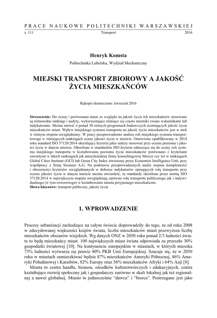 Miejski transport zbiorowy a jakość życia mieszkańców Urban public
