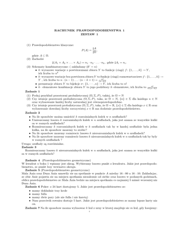 RACHUNEK PRAWDOPODOBIENSTWA 1 ZESTAW 1 (1
