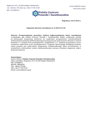 Zapytanie ofertowe - Polskie Centrum Fotoniki i Światłowodów