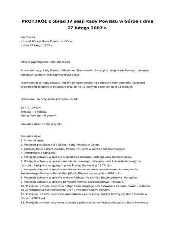 PROTOKÓŁ z obrad IV sesji Rady Powiatu w Górze z dnia 27 lutego