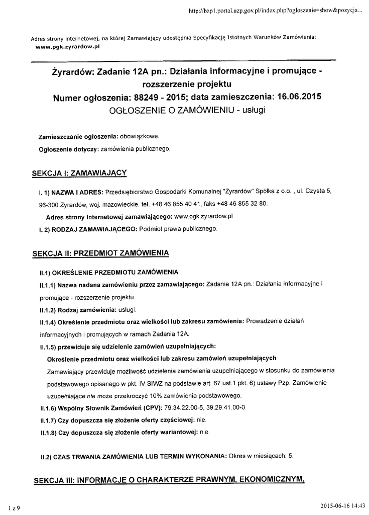 Ogłoszenie o zamówieniu - BIP Przedsiębiorstwa Gospodarki