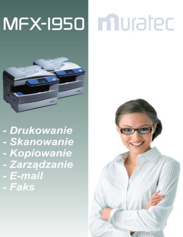 - Drukowanie - Skanowanie - Kopiowanie - Zarządzanie - E-mail - Faks Parametry ogólne Prędkość kopiowania/drukowania: MFX-1950D 19 str/min (10 dupleks) Metoda druku LED Skala szarości 256 Podajnik dokumentów 80 arkuszy (A5-A4, 52-105 g/m2) Podajniki papieru Kaseta - 500 arkuszy (A5-A4, 60-90 g/m2) 50 arkuszy Bypass -podajnik boczny (A6-A4, 60-120 g/m2) Max. 1050 arkuszy Wyświetlacz LCD dwuliniowy Interfejs USB, Ethernet (MFX-1950D opcja) Protokół sieciowy TCP/IP Dupleks Standard Systemy operacyjne Windows 98, 98SE, ME, NT4.0, 2000, XP, Vista Wymiary 520 x 446 x 450 mm (Szer x Wys x Głęb) Zasilanie 220-240 V, 50/60 Hz Skanowanie Rodzaj skanowania TWAIN, Ethernet (MFX-1930 opcja) Rozdzielczość 600/300/200/100 dpi Prędkość skanowania Cz-b: 3,2 sekundy Kolor: 8,1 sekundy Formaty zapisu PDF, TIFF, JPEG Faks Prędkość modemu 33,6 Kbps Kompresja danych MH, MR, MMR, JBIG Prędkość transmisji 2 sekundy Pamięć 8 MB (650 stron A4) Przechowywanie w pamięci 72 godziny Książka adresowa 200 wpisów Wybieranie grupowe 32 grupy Historia faksu 100 Kopiowanie 80 arkuszy (A5-A4, 52-105 g/m2) Opcje Czas pierwszej kopii MFX-1950D 10 sekund Kontroler PCL, OfficeBridge, Karta sieciowa, 32 MB dodatkowej pamięci dla faksu, Kaseta na 500 arkuszy, Druga linia faksu, Licznik mechaniczny, Telefon, Karta sieciowa Wifi, Szafka pod urządzenie Czas nagrzewania 23 sekundy Wielokrotne kopiowanie 1-99 Zoom 25-400% (krok 1%) 25-200% (krok 1%) ADF Rozdzielczość 600 x 600 dpi Funkcje kopiowania Sortowanie elektroniczne, dupleks, broszura, łączenie (2 w 1) Automatyczny jednostronny podajnik dokumentów Drukowanie Kontroler Standard: GDI Opcjonalnie: PCL 6/5e Rozdzielczość 600 x 600 dpi Funkcje drukowania Dupleks, broszura, sortowanie elektroniczne, anulowanie pracy - Drukowanie sieciowe - Skanowanie do folderów - Skanowanie do e-mail - Skanowanie do FTP - PC-Faks sieciowy - Przekazywanie faksów - 1000 wpisów w książce adresowej - 100 grup w wybieraniu grupowym - Zgodność z protokołem LDAP - Zarządzanie pracami Twój partner Muratec: Digital Solutions Dystrybucja Polska Sp. z o.o. Warszawa, ul. Kolumba 36 [email protected] tel. (22) 497 99 79 www.digitalsolutions.pl