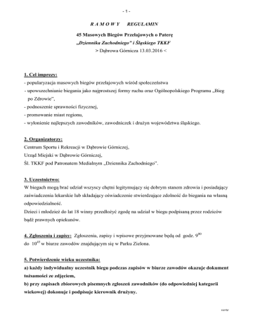 RAMOWY REGULAMIN 45 Masowych Biegów