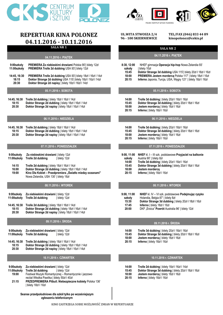 repertuar kina polonez 04.11.2016 - 10.11.2016