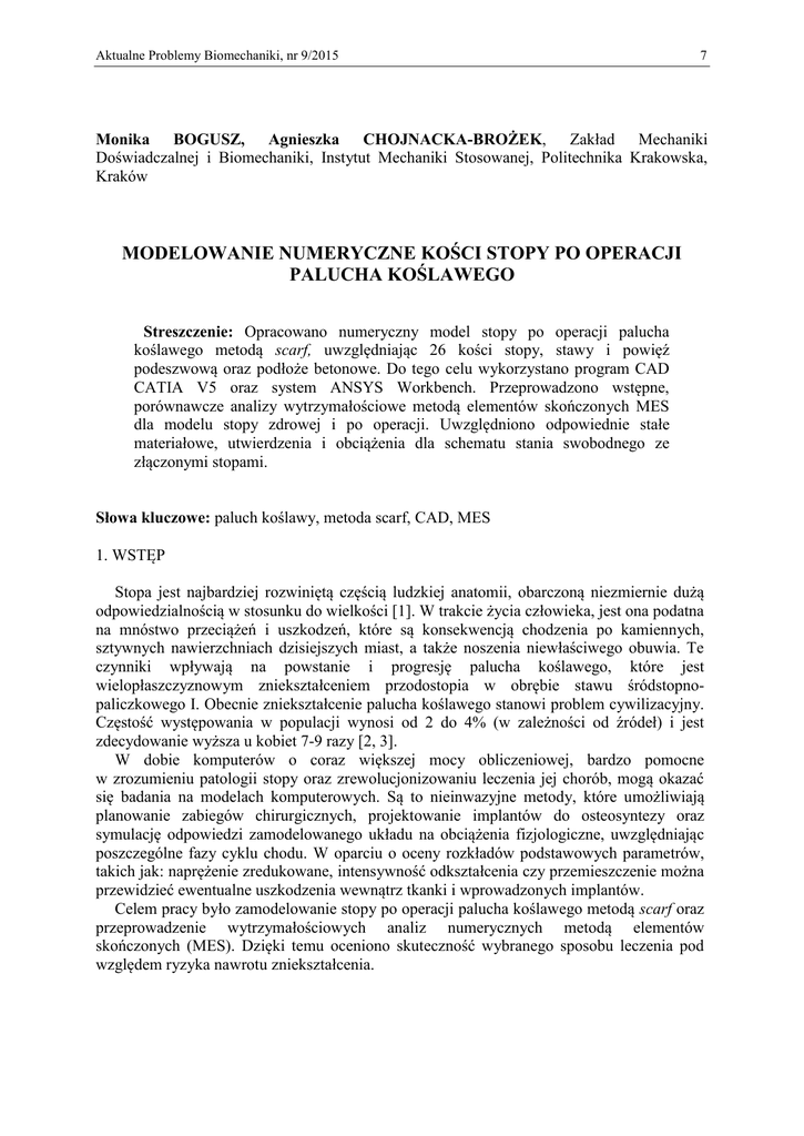 MODELOWANIE NUMERYCZNE KOŚCI STOPY PO OPERACJI