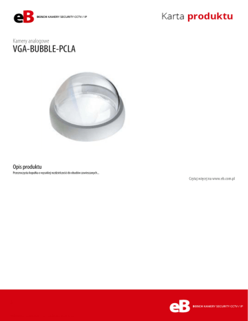 Kamery analogowe VGA-BUBBLE-PCLA Opis produktu Przezroczysta kopułka o wysokiej rozdzielczości do obudów zawieszanych... Czytaj więcej na www.eb.com.pl