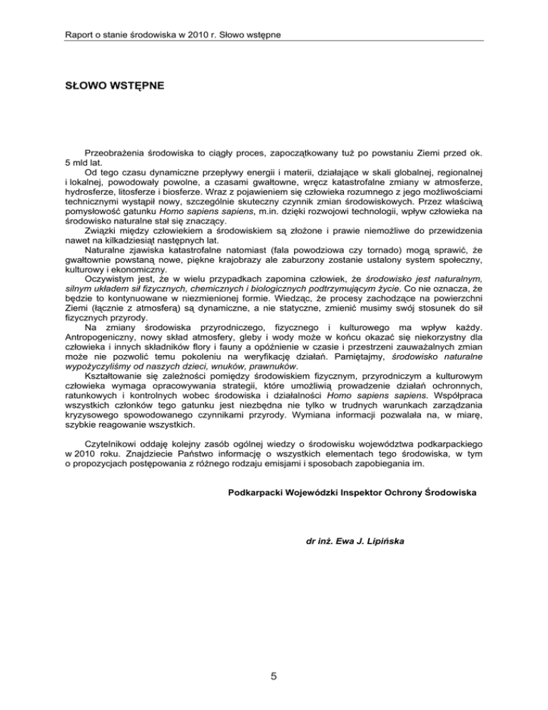 5 słowo wstępne - Wojewódzki Inspektorat Ochrony Środowiska w
