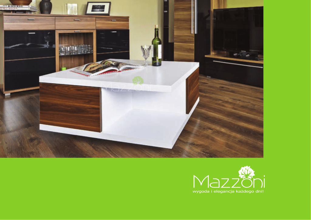 wygoda i elegancja każdego dni! NEO 32-33 34-35 36-37 DOT 38-39 OMEGA TWIST KATALOG pomocniki ławostoły LEXUS 4-5 ASTON 6-7 DELUX 8-9 CAMEL 10-11 RIO 12-13 BRAWO 14-15 BETA 16-17 CLEO 18-19 OSLO | SOLO 20-21 ławy HUGO 40 BOSS 41 stoły i krzesła COLT 42-43 LOFT 44-46 AWATAR 47-51 ROYAL 52 OLIMP 53 BELLINI 54 BELLA 55 CAPRI 55 CARO 56 56 PABLO 2 FABIO MARCO 23 HILTON 57 POLO 24 GOBI 57 FALCO 25 ZARRA 58 GALAXY 26-27 OPTIMA 58 IRON 28-29 30-31 DAFNE 59 MONACO 59 ALFA Poznaj nas bliżej... Meble MAZZONI kreują wnętrze, Firma MAZZONI powstała w 2005 roku. Od tego czasu staliśmy się na rynku jednym z wiodących producentów ław, stołów i krzeseł, zyskując opinię dynamicznie rozwijającego się przedsiębiorstwa o stabilnej pozycji, gwarantującego pewność i rzetelność. tworzone są zgodnie z najnowszymi trendami, w oparciu o sprawdzone, a zarazem nowoczesne technologie. Łączą piękny wygląd z komfortem i jakością wykonania. Projektując je połączyliśmy wiedzę o wzornictwie, doświadczenie i pasję. Dodaliśmy wiele funkcjonalnych, nowoczesnych rozwiązań, które sprawdzają się zarówno w tradycyjnych, jak i nowoczesnych wnętrzach. klientów. Naszym atutem jest nowoczesny design, wysoka jakość wyrobów, ich funkcjonalność i trwałość. W naszej ofercie znajduje się kilkadziesiąt modeli wyrobów, dzięki czemu możemy zadowolić indywidualne preferencje i gusty nabywcy. Naszą główną wartością jest zespół ludzi, który składa się organizacji. Zespół ten jest dynamiczny, otwarty na innowacje i kreatywny we wszystkich podjętych działaniach. Łączy nas pasja, profesjonalizm i doświadczenie. Przykładamy dużą wagę do ciągłego rozwoju. Stawiamy na wzornictwo, rozwój technologiczny zarówno w obszarze nowych procesów jak i produktów. Inwestujemy w badanie i rozwój, co pozwala nam się wyróżniać i odświeżać ofertę naszych produktów w odpowiedzi na trendy rynkowe. Zaletą naszych kolekcji jest indywidualny charakter, wygoda i różnorodność. Ty wybierasz wzór, kolor, strukturę drewna, tkaninę oraz dokonujesz dowolnych zestawień i rozwiązań. Decydując się na meble MAZZONI możesz być pewien ich najwyższej jakości i bezpieczeństwa. Meble wykonane są z wysokiej jakości surowców i materiałów odpornych na uszkodzenia mechaniczne, obciążenia czy wysoką temperaturę. Posiadają one atesty potwierdzające, że są wolne od szkodliwych substancji. Meble MAZZONI sprawią, że każde wnętrze nabierze wyjątkowego charakteru, a Twoje zadowolenie jest dla nas najcenniejszą nagrodą! LEXUS Ława i stół w jednym. Chwila z przyjaciółmi będzie jeszcze milsza… Nowoczesne wzornictwo z wykorzystaniem zwracającego uwagę elementu ze stali sprawia, że ława nabiera elegancji. Ten metalowy detal prezentuje się doskonale przy każdym wybarwieniu drewna, zarówno ciemnym, jak i jasnym. To doskonałe rozwiązanie do niedużych wnętrz. Dzięki synchronicznym prowadnicom, gdy rozkładamy mebel z jednej strony, automatycznie przesuwa się też druga część. Uniesienie blatu natomiast umożliwia siłownik pneumatyczny. Cicho, łatwo, bezpiecznie i jak pięknie… 4 biała alaska dąb rijeka jasny wenge magia II LEXUS 130-065-40-1 dąb sonoma 5 biała alaska wenge magia II dąb sonoma tabac ASTON 120-070-40-2 6 dąb sonoma ASTON Ława dla osób, które lubią meble z charakterem, interesujące. Filiżanka kawy i chwila relaksu lub spotkanie z przyjaciółmi będą przy niej jeszcze przyjemniejsze... Oprócz pięknego, przyciągającego wzrok wzornictwa, ława Aston jest bardzo funkcjonalna. Jej blat można powiększyć aż do 200 cm (przy pomocy specjalnych przedłużek, chowanych, na co dzień pod blatem) oraz unieść aż o 20 cm! Z niedużej, zgrabnej ławy o wielkości 120x70x56 (dł. x szer. x wys.) staje się stołem o wymiarach 200x70x76 cm! To doskonałe rozwiązanie do niedużych wnętrz, gdzie klasyczny stół przytłoczyłby wnętrze. Tym bardziej, że ławę ASTON powiększa się błyskawicznie. Dzięki synchronicznym prowadnicom, gdy rozkładamy mebel z jednej strony, automatycznie przesuwa się też druga część. Uniesienie blatu natomiast umożliwia, bardzo łatwy w obsłudze, siłownik pneumatyczny. Cicho, łatwo i bezpiecznie. orzech california 7 DELUX Ława i stół w jednym. Dzięki niej np. zjesz wygodnie obiad, siedząc na kanapie lub posurfujesz po Internecie mając monitor na komfortowej wysokości. Przy pomocy wygodnej korbki znajdującej się pod blatem, z łatwością uniesiesz go na odpowiedni poziom. Jak wysoko, zależy tylko od Ciebie. Powiększysz go używając specjalnej wkładki umieszczanej w przestrzeni uzyskanej przez rozsunięcie obu części blatu. dąb sonoma 8 biała alaska dąb rijeka jasny orzech california DELUX 130-065-40-1 wenge magia II 9 CAMEL Chcesz wygodnie zjeść, a może posurfować po Internecie mając monitor na komfortowej wysokości? – to produkt w sam raz dla Ciebie… Ława i stół w jednym! Przy pomocy wygodnej korbki, z łatwością uniesiesz go na odpowiedni poziom. Wszystko zależy od Twoich wymagań i potrzeby chwili. Wysokiej jakości prowadnice zapewniają lekkie i wygodne przesuwanie. Prowadnice działają synchronicznie, wystarczy, więc przesunąć jedną część blatu, by druga część automatycznie, w tym samym czasie zrobiła to samo. Stabilne nogi i odpowiednia grubość blatu gwarantują bezpieczeństwo oraz odporność na duże obciążenia. biała alaska 10 wenge magia II wenge magia II dąb sonoma tabac dąb sonoma CAMEL 110-068-40-1 11 RIO Najbardziej popularny mebel z naszej oferty – nie pytaj, dlaczego? Po prostu wypróbuj… Ponadczasowy, pasuje wszędzie i umożliwia stworzenie naprawdę różnorodnych aranżacji. Wygodny i stworzony z myślą o Tobie… Korzystając z wygodnej korbki, z łatwością uniesiesz go na odpowiedni poziom. Dodatkowo możesz jego blat powiększyć aż o 40cm… uwierz to robi różnice… Stabilne nogi i pogru