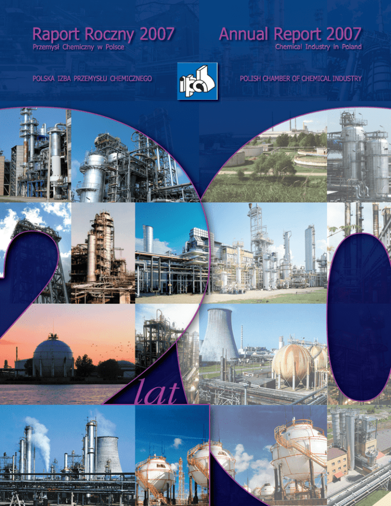 Raport Roczny 2007 Przemysł Chemiczny w Polsce POLSKA IZBA PRZEMYSŁU CHEMICZNEGO Annual Report 2007 Chemical Industry in Poland POLISH CHAMBER OF CHEMICAL INDUSTRY Raport został opracowany przez Biuro Polskiej Izby Przemysłu Chemicznego Tłumaczenie: Katarzyna Łopuska Raport Roczny 2007 Annual Report 2007 PRZEMYSŁ CHEMICZNY W POLSCE CHEMICAL INDUSTRY IN POLAND Polska Izba Przemysłu Chemicznego Polish Chamber of Chemical Industry Druk: ART RODAR s.c., tel. (022) 644-26-63, 855-58-18 Nakład: 420 ISSN 1505-6597 Copyright © by Polska Izba Przemysłu Chemicznego P R Z E M Y S Ł C H E M I C Z N Y W P O L S C E Raport Roczny 2007 C H E M I C Annual Report 2007 A L I N D U S T R Y I N P O L A N D 3 3 P 4 R Z E M Y S Ł C H E M I C Z N Y W P O L S C E Raport Roczny 2007 C H E M I C Annual Report 2007 A L I N D U S T R Y I N P O L A N D R Z E M Y S Ł C H E M I C Z N Y W P O L S C E C H E M I C A L I N D U S T R Y I N P O L A N D CZĘŚĆ I / PART I Polska Izba Przemysłu Chemicznego / Polish Chamber of Chemical Industry SPIS TREŚCI Contents P Władze Izby / Authorities of the Chamber ......................................................................................................................................................10 Lista członków Polskiej Izby Przemysłu Chemicznego / Members of the Polish Chamber of Chemical Industry ..............................................................................................................11 Komisje i grupy robocze / Commissions and Working Groups ...........................................................................................................................................19 System Pomocy w Transporcie Materiałów Niebezpiecznych SPOT – element ICE / System of Assistance in Hazardous Materials Transport – element of ICE ..................................................................................26 Program „Odpowiedzialność i Troska” / ”Responsible Care” Program ...................................................................................................................................................32 Polska Platforma Technologiczna Zrównoważonej Chemii / Polish Technological Platform of Sustainable Chemistry ............................................................................................................34 REACH .....................................................................................................................................................................................37 Współpraca z CEFIC i innymi organizacjami europejskimi / Cooperation with CEFIC and other European organizations ......................................................................................................42 Nagrody i wyróżnienia / Awards and Distinctions ..........................................................................................................................................................44 Najważniejsze wydarzenia mające wpływ na działalność firm / Most significant events influencing activities of companies ......................................................................................................49 CZĘŚĆ II / PART II Raport o wynikach ekonomicznych przemysłu chemicznego w Polsce w 2007 roku / Report on the economic results of the chemical industry in Poland in 2007 Rozdział 1 Chapter 1 Ogólna charakterystyka sytuacji gospodarczej kraju w roku 2007 na tle wyników lat poprzednich / General characteristics of Polish economic situation in 2007 in comparision with results of previous years ....... 54 Rozdział 2 Chapter 2 Sytuacja ekonomiczna przemysłu chemicznego na tle sytuacji krajowego przemysłu / Economic situation of chemical industry in comparison with the state of national industry ............................... 57 Rozdział 3 Chapter 3 Podmioty gospodarcze przemysłu chemicznego w Polsce / Economic entities of chemical industry in Poland .............................................................................................. 61 Rozdział 4 Chapter 4 Pracownicy w przemyśle chemicznym / Employees in chemical industry ........................................................................................................................ 63 Rozdział 5 Chapter 5 Produkcja przemysłu chemicznego w latach 2005–2007 / Production of chemical industry in 2005–2007 ................................................................................................. 67 Rozdział 6 Chapter 6 Handel zagraniczny w latach 2005–2007 / Foreign trade in 2005–2007 ............................................................................................................................. 74 Rozdział 7 Chapter 7 Nakłady inwestycyjne i prace naukowo-badawcze / Investment outlays and research and development works ................................................................................ 81 Raport Roczny 2007 Annual Report 2007 5 WSTĘP Introduction 6 P R Z E M Y S Ł C H E M I C Z N Y W P O L S C E C H E M I C A L I N D U S T R Y I N P O L A N D Szanowni Państwo, Ladies and Gentlemen, W dwudziestym roku działania Polskiej Izby Przemysłu Chemicznego z przyjemnością przekazujemy Państwu 16. już edycję Raportu Rocznego. In the twentieth year of the activity of the Polish Chamber of Chemical Industry, we are pleased to present you the 16th edition of the Annual Report. Miniony rok 2007 był pierwszym rokiem działania nowego Rządu i Parlamentu wyłonionego w wyborach. Był to rok dużych zmian politycznych przy nadal wysokim tempie rozwoju gospodarczego. Dalszy postęp gospodarczy jest uwarunkowany zrównoważonym rozwojem przemysłu chemicznego w Polsce. Last year 2007 – was the first year of the activity of a new Government and the newly elected Parliament. It was the year of big political changes and of a still high rate of economic development. Further economic progress depends on the sustainable development of c