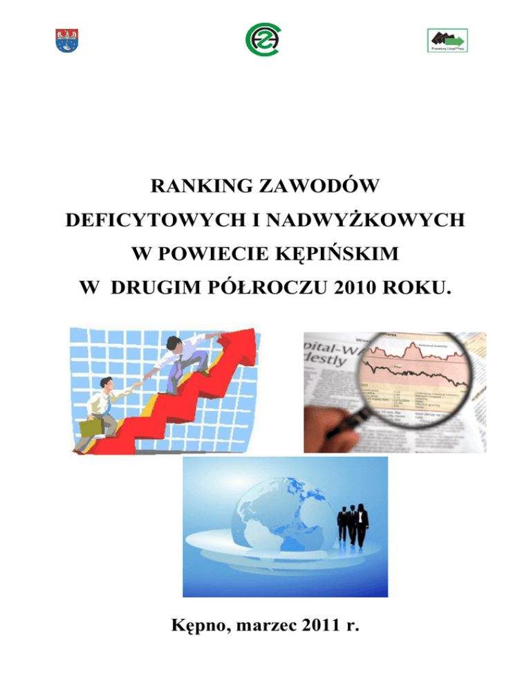 RANKING ZAWODÓW DEFICYTOWYCH I NADWYŻKOWYCH W POWIECIE KĘPIŃSKIM W DRUGIM PÓŁROCZU 2010 ROKU. Kępno, marzec 2011 r. Ranking zawodów deficytowych i nadwyżkowych w powiecie kępińskim w drugim półroczu 2010 r. Spis treści: 1. Wstęp 3 2. Analiza bezrobocia według zawodów (grup zawodów) 6 2.1 Według grup zawodów 8 2.2 Według zawodów 9 2.3 Nowe rejestracje wg grup zawodów 11 2.4 Nowe rejestracje wg zawodów 12 3. Analiza ofert pracy według zawodów (grup zawodów) 16 4. Analiza zawodów deficytowych i nadwyżkowych 19 4.1 Zawody deficytowe 20 4.2 Zawody nadwyżkowe 21 4.3 Grupy zawodów deficytowych i nadwyżkowych 22 5. Wnioski 24 2 Ranking zawodów deficytowych i nadwyżkowych w powiecie kępińskim w drugim półroczu 2010 r. 1. Wstęp Celem niniejszego opracowania jest analiza danych dotyczących zawodów nadwyżkowych oraz deficytowych w powiecie kępińskim. Wyniki opracowania pomogą zharmonizować kierunki kształcenia z potrzebami rynku pracy oraz pozytywnie wpłynąć na młodzież, która podejmuje swoje pierwsze decyzje dotyczące drogi zawodowej. Wyobrażenia ludzi młodych na temat zawodu, jaki chcą wykonywać w przyszłości są często mgliste, a problemy ze znalezieniem odpowiedniego zatrudnienia są dla nich wręcz abstrakcją. Wiedza dotycząca zawodów deficytowych oraz nadwyżkowych na rynku pracy, na którym się znajdą po uzyskaniu wykształcenia, może wpłynąć na podjęcie przez nich właściwego wyboru drogi zawodowej. Po uzyskaniu odpowiedniego zasobu informacji, m.in. dzięki tej analizie młodzi ludzie wybierając swój przyszły zawód nie będą już tak bezradni w momencie pojawienia się na rynku pracy. Uświadomienie młodzieży jak ważna jest decyzja związana z wyborem zawodu jest niewątpliwie jednym ze sposobów zapobiegania wzrostowi bezrobocia. Wszakże to młodzi ludzie do 25–tego roku życia stanowią najliczniejszą grupę osób pozostających bez pracy w Polsce, jak również grupę najbardziej zagrożoną bezrobociem. Niniejsze opracowanie ma ponadto na celu ułatwienie władzom samorządowym pozyskiwania inwestorów, poprzez ukazanie ilu potencjalnych pracowników znajduje się na danym obszarze. Dzięki monitoringowi zawodów będzie można w lepszy sposób skoordynować szkolenia osób bezrobotnych z potrzebami pracodawców, co niewątpliwie wpłynie na utrzymanie wysokiej efektywności szkoleń. Monitorowanie zawodów deficytowych i nadwyżkowych jest procesem systematycznego obserwowania zjawisk zachodzących na rynku pracy dotyczących kształtowania się popytu na pracę i podaży zasobów pracy w przekroju terytorialno – zawodowym oraz formułowania na tej podstawie ocen, wniosków i krótkotrwałych prognoz niezbędnych dla prawidłowego funkcjonowania systemów: szkolenia bezrobotnych oraz kształcenia zawodowego zgodnie z potrzebami rynku pracy. Monitoring wpłynie również na doskonalenie jakości usług rynku pracy zarówno w zakresie pośrednictwa jak i doradztwa zawodowego, poprzez dostarczanie jak najbardziej szczegółowych danych dotyczących zapotrzebowania na rynku pracy. Zgodnie z zapisami Ustawy z dnia 20 kwietnia 2004 r. o promocji zatrudnienia i instytucjach rynku pracy z późniejszymi zmianami (Dz. U. z 2008 r. Nr 69, poz. 415 z późn. 3 Ranking zawodów deficytowych i nadwyżkowych w powiecie kępińskim w drugim półroczu 2010 r. zm., art. 8 ust. 1. pkt 3 i art. 9 ust. 1 pkt 9) opracowywanie analiz rynku pracy, w tym prowadzenie monitoringu zawodów deficytowych i nadwyżkowych jest jednym z zadań samorządu województwa oraz samorządu powiatu w zakresie polityki rynku pracy. Monitoring obejmuje 10 grup wielkich (kod 1-cyfrowy), 43 duże grupy zawodowe (kod 2-cyfrowy), 132 grupy średnie (kod 3-cyfrowy), 444 grupy elementarne (kod 4cyfrowy), przy czym grupy elementarne obejmują 2360 zawodów oraz specjalności (kod 6cyfrowy), zgodnie z „klasyfikacją zawodów i specjalności na potrzeby rynku pracy”, która została wprowadzona rozporządzeniem Ministra Pracy i Polityki Społecznej z dnia 27 kwietnia 2010 r.(Dz. U. 2010 Nr 82, poz. 537). Monitoring zawodów deficytowych i nadwyżkowych jest prowadzony w oparciu o ujednolicone dla całego kraju zalecenia metodyczne opracowane przez Departament Rynku Pracy Ministerstwa Gospodarki i Pracy. Zgodnie z zaleceniami monitoring zawodów deficytowych i nadwyżkowych opracowywany jest za drugie półrocze 2010 rok na poziomie powiatu, województwa i kraju przez publiczne służby zatrudnienia. Podstawę opracowania analizy stanowią raporty utworzone centralnie przy użyciu specjalnie przygotowanej aplikacji na podstawie danych do „sprawozdania o rynku pracy” MPiPS - 01 z załącznika nr 2 („Bezrobotni według rodzaju działalności ostatniego miejsca pracy i ofert pracy”) oraz załącznika nr 3 („Bezrobotni oraz oferty pracy według zawodów i specjalności) wg stanu na koniec 2009 roku: a) T-II/P-1. Bezrobotni wg zawodów w powiecie kępińskim, b) T-II/P-1a. Struktura bezrobotnych wg grup zawodowych w powiecie kępińskim, c) T-II/P-2. Napływ bezrobotnych wg zawodów w powiecie kępińskim, d) T-II/P-2a. Struktura napływu bezrobotnych wg grup zawodowych w powiecie kępińskim, e) T-II/P-3. Oferty pracy wg zawodów w powiecie kępińskim, f) T-II/P-3a. Struktura ofert pracy wg grup zawodowych w powiecie kępińskim, g) T-II/P-4. Zawody deficytowe i nadwyżkowe w powiecie kępińskim, h) T-II/P-5. Ranking zawodów (grup zawodów wg kodu dwucyfrowego) deficytowych i nadwyżkowych w powiecie kępińskim, i) T-II/P-6. Ranking zawodów (grup zawodów wg kodu czterocyfrowego) deficytowych i nadwyżkowych w powiecie kępińskim, j) T-II/P-7. Ranking zawodów (grup zawodów wg kodu dwucyfrowego) generujących długotrwałe bezrobocie w powiecie kępińskim, k) T-II/P-8. Ranking zawodów (grup zawodów wg kodu czterocyfrowego) generujących 4 Ranking zawodów deficytowych i nadwyżkowych w powiecie kępińskim w drugim półroczu 2010 