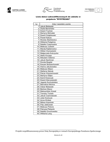 Lista dzieci zakwalifikowanych do udziału w projekcie "BYSTRZAKI"