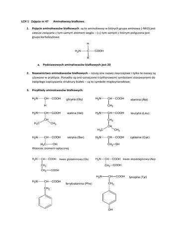 LCH 1 Zajęcia nr 47 Aminokwasy białkowe. 1. Pojęcie