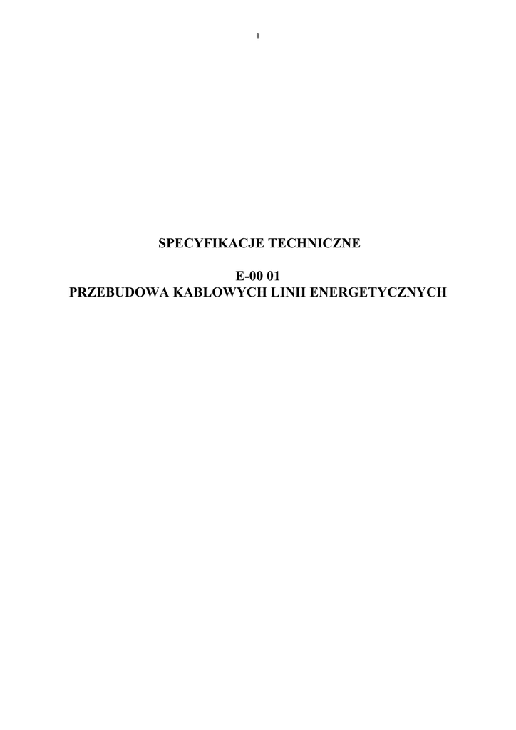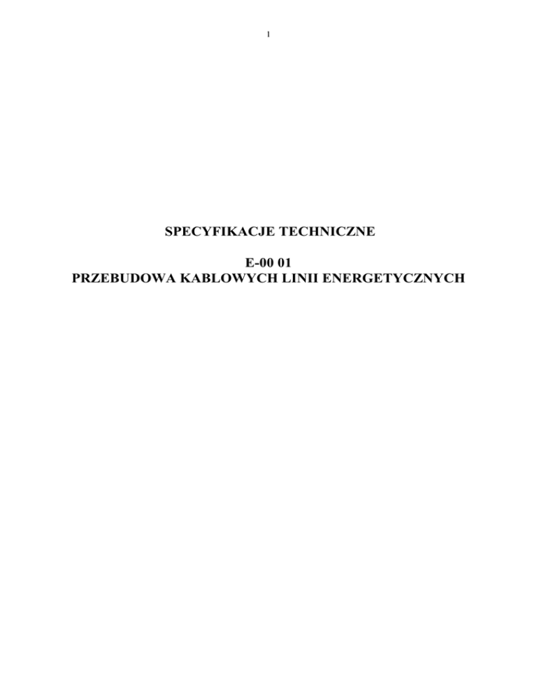 1 SPECYFIKACJE TECHNICZNE E-00 01 PRZEBUDOWA KABLOWYCH LINII ENERGETYCZNYCH 2 1. WSTĘP 1.1. Przedmiot OST Przebudowy kolizji energetycznych w ramach przebudowy ul. Aptecznej w SkarŜysku -Kam. 1.2. Zakres stosowania ST Ogólna specyfikacja techniczna (ST) stanowi obowiązkową podstawę opracowania szczegółowej specyfikacji technicznej (SST) stosowanej jako dokument przetargowy i kontraktowy przy zlecaniu i realizacji robót na drogach krajowych i wojewódzkich. 1.3. Zakres robót objętych ST. a/ Przebudowa linii kablowej SN - relacji Apteczna 1-Apteczna2 . Odkopać istniejąc kabel 3xYHAKXs 1X120 mm2 –relacji jw. na odcinku ozn. M4 na wysokości stacji „Apteczna 3 ” punktu ozn. M3 , i ułoŜyć ponownie między powyŜszymi punktami M3,M4 po nowej trasie o długości l= 308,0 m . b/ Przebudowa kabla ŚN-15 KV relacji ; -stacja „Apteczna1„ - stacja „Hermes”, -Odkopać istniejąc kabel HAKnFta 3x120 mm2 –relacji jw. na odcinku ozn. M1-stacja-Apteczna1 –od miejsca oznaczonym punktem M2 , wycięty odcinek zdemontować / lub unieczynnić/. Po nowej trasie , jak pokazano na rys, ułoŜyć nowy odcinek kabla 3x YHAKXs 1x120 mm2 o długości l=58 m, na odcinku oznaczonym literami- M2-stacja Apteczna1 /M1/. Połączenia z istniejącym kablem a projektowanym wykonać mufą przejściową typu –3M-VXP-/50-150/12/20KV, Podłączenie w stacji trafo Apteczna 1 wykonać głowicą wnętrzowa typu –POLT 24D-1XI-/70-240/-12/20KV, na odcinku skrzyŜowania z podziemnym uzbrojeniem , kabel układać rurze ochronnej PS –160 - na odcinku skrzyŜowania z ulicami , kabel układać w rurach ochronnych gładkościennych typu SRS – 160 układanych metodami przecisku lub przewiertu c/ Ochrona linii kablowych NN Po odkopaniu linii kablowych nn na odcinkach skrzyŜowania z ul. Apteczną oznaczonych B1-B2;B3B4;B5-B6;B7-B8; B9-B10; B11-B12 , w przypadku stwierdzenia braku rur ochronnych , projektuje ułoŜenie nowych rur dwudzielnych firmy AROTA typu PS-110 o długościach podanych na rysunku nr 2. Kabel nn krzyŜujący się z ulicą Apteczna na odcinku B5-B6 oprócz ochrony warunkowej rurą dwudzielną PS110 naleŜy odkopać i odsunąć od krawęŜnika na odległość 0,5 m. d/ Ochrona linii kablowych ŚN Po odkopaniu linii kablowych ŚN na odcinkach skrzyŜowania z ul. Apteczną oznaczonych A1-A2; A3A4;A5-A6 , w przypadku stwierdzenia braku rur ochronnych , projektuje ułoŜenie nowych rur dwudzielnych firmy AROTA typu PS-160 o długościach podanych na rysunku nr 2. 1.4. Określenia podstawowe. 1.4.1. Linia kablowa - kabel wieloŜyłowy lub wiązka kabli jednoŜyłowych w układzie wielofazowym albo kilka kabli jedno - lub wieloŜyłowych połączonych równolegle, łączenie z osprzętem, ułoŜone na wspólnej trasie i łączące zaciski tych samych dwóch urządzeń elektrycznych jedno - lub wielofazowych. 1.4.2. Trasa kablowa - pas terenu w którym ułoŜone są jedna lub więcej linii kablowych. 1.4.3. Napięcie znamionowe linii - napięcie międzyprzewodowe na które linia kablowa została zbudowana. 3 1.4.4. Osprzęt linii kablowej - zbiór elementów przeznaczonych do łączenia, rozgałęzienia lub zakończenia kabli. 1.4.5. Osłona kabla - konstrukcja przeznaczona do ochrony kabla przed uszkodzeniami mechanicznymi, chemicznymi i działaniem łuku elektrycznego. 1.4.6. Przykrycie - osłona ułoŜona nad kablem w celu ochrony przed mechanicznym uszkodzeniem od góry. 1.4.7. Przegroda - osłona ułoŜona wzdłuŜ kabla w celu oddzielenia go od sąsiedniego kabla lub od innych urządzeń. 1.4.8. SkrzyŜowanie - takie miejsce na trasie linii kablowej, w którym jakakolwiek część rzutu poziomego linii kablowej przecina lub pokrywa jakąkolwiek część rzutu poziomego innej linii kablowej lub innego urządzenia podziemnego. 1.4.9. ZbliŜenie - takie miejsce na trasie linii kablowej, w którym odległość między linią kablową, urządzeniem podziemnym lub drogą komunikacyjną itp. jest mniejsza niŜ odległość dopuszczalna dla danych warunków układania bez stosowania przegród lub osłon zabezpieczających i w których nie występuje skrzyŜowanie. 1.4.10. Przepust kablowy - konstrukcja o przekroju okrągłym przeznaczona do ochrony kabla przed uszkodzeniami mechanicznymi, chemicznymi i działaniem łuku elektrycznego. 1.4.1.. Dodatkowa ochrona przeciwporaŜeniowa - ochrona części przewodzących, dostępnych w wypadku pojawienia się na nich napięcia w warunkach zakłóceniowych. 1.4.12. Pozostałe określenia - są zgodne z normą PN-61/E-01002 [1] . Wykonawca przed przystąpieniem do wykonywania robót, powinien przedstawić do aprobaty InŜyniera Program Zapewnienia Jakości. 2. MATERIAŁY 2.1. Ogólne wymagania Wszystkie zakupione przez Wykonawcę materiały, dla których normy PN i BN przewidują posiadania zaświadczenia o jakości lub atestu, powinny być zaopatrzone przez producenta w taki dokument. Inne materiały powinny być wyposaŜone w takie dokumenty na Ŝyczenie InŜyniera. 2.2. Kable. Przy przebudowie istniejących linii kablowych lub budowie nowych naleŜy stosować kable uzgodnione z Zakładem Energetycznym oraz zgodne z dokumentacja projektową. JeŜeli dokumentacja projektowa nie przewiduje inaczej to w kablowych liniach elektroenergetycznych naleŜy stosować następujące typy kabli: YAKY YKY wg PN-76/E-90301 [7] o napięciu znamionowym do 1 kV, Przekrój Ŝył kabli powinien być dobrany w zaleŜności od dopuszczalnego spadku dobrano w zaleŜności od dopuszczalnego spadku napięcia i dopuszczalnej temperatury nagrzania kabla przez prądy robocze i zwarciowe wg Zarządzenia MGiE [24] oraz powinien spełniać wymagania skuteczności zerowania w instalacjach zerowych wg Zarządzenia Ministra Przemysłu [23]. Bębny z kablami naleŜy przechowywać w pomieszczeniach pokrytych dachem, na utwardzonym podłoŜu. 2.3. Mufy i głowice kablowe. Mufy i głowice powinny być dostosowane do typu kabla, jego napięcia znamionowego, przekroju i liczby Ŝył oraz