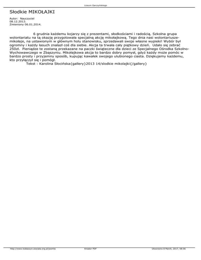 Tekst : Karolina Słocińska{gallery}2013 14/slodkie mikolajki{/gallery}