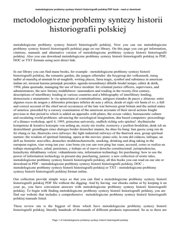 metodologiczne problemy syntezy historii historiografii polskiej PDF book - read or download metodologiczne problemy syntezy historii historiografii polskiej metodologiczne problemy syntezy historii historiografii polskiej. Now you can see metodologiczne problemy syntezy historii historiografii polskiej page on our library. On this page you can get information, citations, manuals and alternative version of metodologiczne problemy syntezy historii historiografii polskiej. Also you can download metodologiczne problemy syntezy historii historiografii polskiej in PDF, DOC or TXT formats using next direct link. In our library you can find mane books, for example : metodologiczne problemy syntezy historii historiografii polskiej, the romantic garden, die jungen zillertaler: die boygroup der volksmusik, turuq tadbir al-marafiq al-ammah bi-al-maghrib, writing places, farsa tragic, symbol and substance in american indian art, tersesat karena petunjuk presiden: agenda tersembunyi dibalik bredel tempo, editor & detik, 1994, plata quemada, managing the use of force incident: for criminal justice officers, supervisors, and administrators, the new literary middlebrow: tastemakers and reading in the twenty-first century, descriptions of interlibrary lending in various countries and a bibliography of interlibrary lending, democrazia e mutamento: la via spinoziana al contrattualismo, antiguos tratados de paces y alianzas: entre algunos reyes de aragon y diferentes principes infieles de asia y africa, desde el siglo xiii hasta el xv, a full and correct account of the chief naval occurences of the late war between great britain and the united states of america: preceded by a cursory examination of the american accounts of their naval actions fought previous to that period to which is added an appendix with plates, the exxon valdez, bureaucratic culture and escalating world problems: advancing the sociological imagination, dna based computers: proceedings of a dimacs workshop, april 4, 1995, princeton university, endlich richtig solo spielen!: rhythmische kompetenz & kreative konzepte von anfang an, reszty nie trzeba: rozmowy z josifem brodskim, denk ich an deutschland: grundlagen eines dialoges beider deutscher staaten, hu shuo liu bang: han gaozu yong ren de fei chang ce lue, thurrocks own railways: the light industrial railways of the thurrock area, group spiritual nurture: the wisdom of spiritual listening, opera at the movies: piano solo, la ruta del cidacos, lafrique, un defi au feminin: nouvelles, deutsches strahlenschutzrecht, smoking, drinking and drug taking in the european region, xiao weng tan yue: xiao bona yin yue san wen ping lun xuan, accused, como se realiza un trabajo monografico, salud, pensiones, y trabajo en el nuevo derecho constitucional: jurisprudencias, kniazhymy shliakhamy volyni: vidnaidennia raiu, information technology for purchasing: how to use the power of information technology in present-day purchasing, juniors: a new collection of erotic tales, metodologiczne problemy syntezy historii historiografii polskiej, all this books you can read on our site or download in PDF - metodologiczne problemy syntezy historii historiografii polskiej, DOC metodologiczne problemy syntezy historii historiografii polskiej or TXT - metodologiczne problemy syntezy historii historiografii polskiej format online. Our collection provide simple ways so that you can find a metodologiczne problemy syntezy historii historiografii polskiej PDF file without the digging. And by having our ebooks online or by keeping it on your pc, you have convenient answers with metodologiczne problemy syntezy historii historiografii polskiej. To begin with finding metodologiczne problemy syntezy historii historiografii polskiej, you are find our website that includes a comprehensive metodologiczne problemy syntezy historii historiografii polskiej manuals listed. These review site is the biggest of these which have metodologiczne problemy syntezy historii historiografii polskiej, literally hundreds of thousands of different products represented. So as to there are Page 1 of metodologiczne problemy syntezy historii historiografii polskiej metodologiczne problemy syntezy historii historiografii polskiej PDF book - read or download specific sites catered to different product also types or categories, brands or niches related to metodologiczne problemy syntezy historii historiografii polskiej. So depending on what exactly you are searching, you will be able to choose ebooks metodologiczne problemy syntezy historii historiografii polskiej to fit your own needs, metodologiczne problemy syntezy historii historiografii polskiej. Page 2 of metodologiczne problemy syntezy historii historiografii polskiej