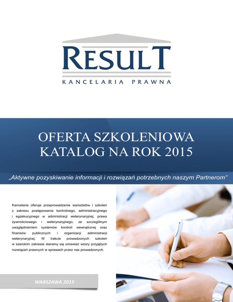 OFERTA SZKOLENIOWA KATALOG NA ROK 2015