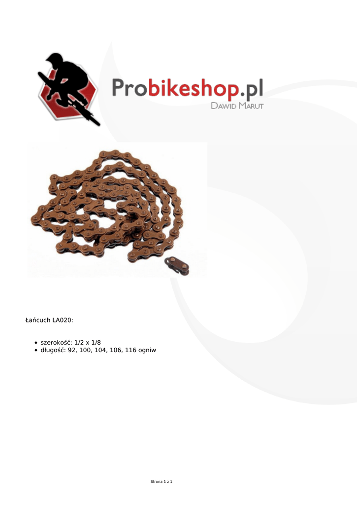 Łańcuch LA020: szerokość: 1/2 x 1/8 długość: 92, 100, 104, 106, 116 ogniw Strona 1 z 1