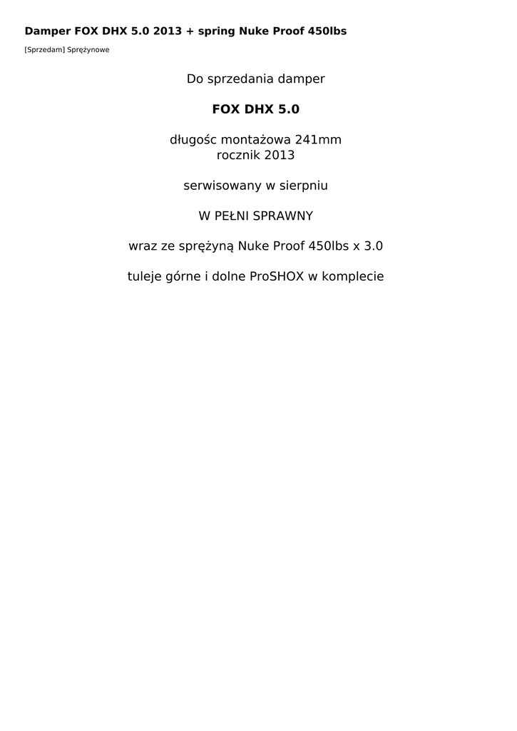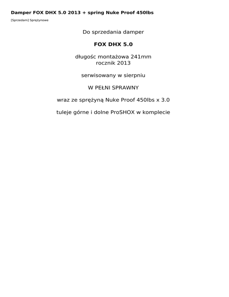 Do sprzedania damper FOX DHX 5.0 długośc