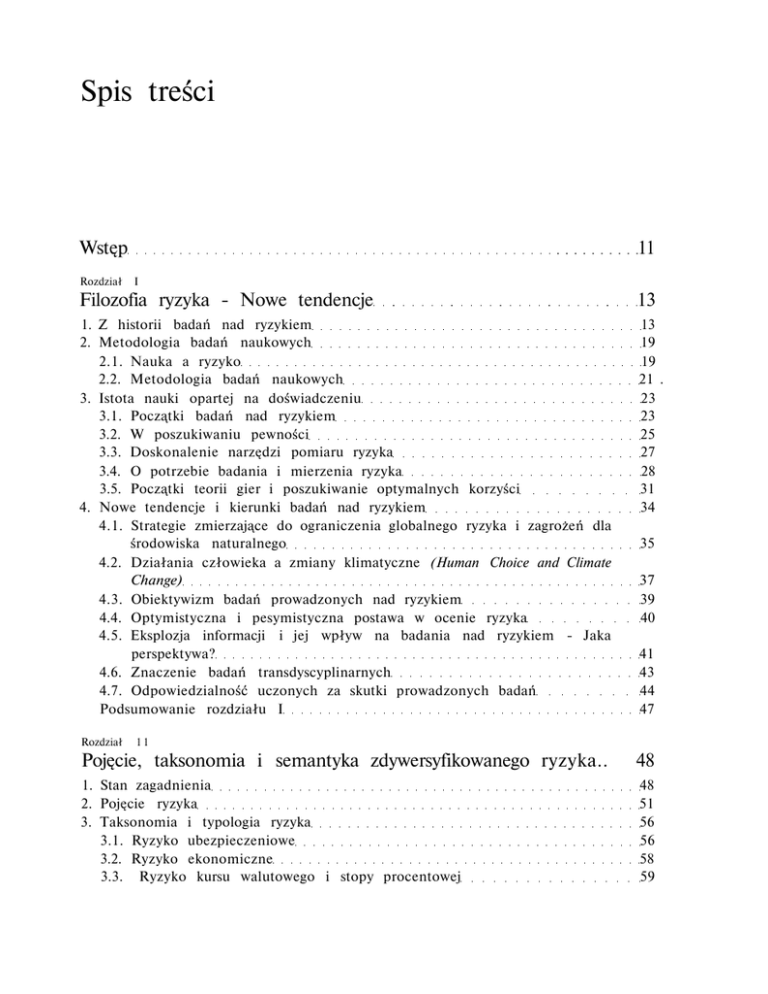 Spis treści Wstęp Rozdział 11 I Filozofia ryzyka - Nowe tendencje 13 1. Z historii badań nad ryzykiem 2. Metodologia badań naukowych 2.1. Nauka a ryzyko 2.2. Metodologia badań naukowych 3. Istota nauki opartej na doświadczeniu 3.1. Początki badań nad ryzykiem 3.2. W poszukiwaniu pewności 3.3. Doskonalenie narzędzi pomiaru ryzyka 3.4. O potrzebie badania i mierzenia ryzyka 3.5. Początki teorii gier i poszukiwanie optymalnych korzyści 4. Nowe tendencje i kierunki badań nad ryzykiem 4.1. Strategie zmierzające do ograniczenia globalnego ryzyka i zagrożeń dla środowiska naturalnego 4.2. Działania człowieka a zmiany klimatyczne (Human Choice and Climate Change) 4.3. Obiektywizm badań prowadzonych nad ryzykiem 4.4. Optymistyczna i pesymistyczna postawa w ocenie ryzyka 4.5. Eksplozja informacji i jej wpływ na badania nad ryzykiem - Jaka perspektywa? 4.6. Znaczenie badań transdyscyplinarnych 4.7. Odpowiedzialność uczonych za skutki prowadzonych badań Podsumowanie rozdziału I 13 19 19 21 . 23 23 25 27 28 31 34 Rozdział 11 35 37 39 40 41 43 44 47 Pojęcie, taksonomia i semantyka zdywersyfikowanego ryzyka.. 48 1. Stan zagadnienia 2. Pojęcie ryzyka 3. Taksonomia i typologia ryzyka 3.1. Ryzyko ubezpieczeniowe 3.2. Ryzyko ekonomiczne 3.3. Ryzyko kursu walutowego i stopy procentowej 48 51 56 56 58 59 6 Spis treści 3.4. Ryzyko produkcyjne 3.5. Ryzyko prawne a bezpieczeństwo 3.6. Ryzyko organizacyjne 3.7. Ryzyko polityczne 3.8. Ryzyko związane z nowymi technologiami i ekologią 3.9. Ryzyko medyczne i epidemiologiczne 3.10. Ryzyko farmaceutyczne 3.11. Ryzyko chemiczne 3.12. Ryzyko psychologiczne 3.13. Ryzyko socjologiczne 3.14. Medialne ryzyko środków przekazu 3.15. Ryzyko cywilizacyjne i kulturowe 3.16. Ryzyko filozoficzne, etyczne i religijne 3.17. Ryzyko siły wyższej 4. Prawo do podejmowania działań obciążonych ryzykiem Podsumowanie rozdziału II Rozdział 63 64 67 68 70 73 75 77 79 81 83 84 85 88 91 93 III Generalne zasady interdyscyplinarnego zarządzania ryzykiem .. 95 1. Określenie zasad procesu zarządzania ryzykiem 1.1. Identyfikacja i analiza ryzyka 1.2. Ocena i sformułowanie wariantów 1.3. Ograniczanie i eliminowanie przyczyn ryzyka 1.3.1. Zwiększanie zasobu informacji 1.3.2. Skutki asymetrii informacji 2. Przeciwdziałanie zdywersyfikowanemu ryzyku 2.1. Klasyfikacja sposobów przeciwdziałania ryzyku 2.2. Ponoszenie ryzyka (własne pokrycie ryzyka) 2.2.1. Wkalkulowanie ryzyka w cenę 2.2.2. Zapobieganie ryzyku przez tworzenie rezerwy 2.2.3. Przeniesienie ryzyka 2.2.4. Kompensacja ryzyka 3. Problemy związane z zarządzaniem ryzykiem w małych i średnich przedsię biorstwach 4. Inne sposoby radzenia sobie z wybranym rodzajem ryzyka - na przykładzie ryzyka eksportowego Podsumowanie rozdziału III 95 99 99 101 101 102 103 103 104 104 105 106 108 Rozdział 109 111 115 IV Zintegrowane zarządzanie ryzykiem w przedsiębiorstwie 1. Sprzężenie zwrotne pomiędzy zarządzaniem ryzykiem i kierowaniem przed siębiorstwem 2. Identyfikacja ryzyka w tworzonym systemie celów przedsiębiorstwa 3. Rola analizy ryzyka w identyfikowaniu problemów przedsiębiorstwa 4. Uwzględnianie ryzyka przy poszukiwaniu odpowiednich rozwiązań 5. Ryzyko i wybór instrumentów zarządzania ryzykiem 6. Kontrola jako istotny element zarządzania ryzykiem 7. Symptomy przedsiębiorstwa zagrożonego zdywersyfikowanym ryzykiem .. 8. Ryzyko upadłości przedsiębiorstwa - regulacje prawne 8.1. Podmiotowy zakres upadłości 116 117 119 122 125 126 127 129 132 ' 132 Spis treści 1 8.2. Podstawy ogłoszenia upadłości 8.3. Postępowanie w przedmiocie ogłoszenia upadłości 8.4. Orzeczenie sądu o ogłoszeniu upadłości 8.5. Skutki ogłoszenia upadłości 8.6. Postępowanie układowe i likwidacja masy upadłości Podsumowanie rozdziału IV Rozdział V Rola informacji w zarządzaniu gospodarką. Społeczeństwo informacyjne 1. Istota współczesnej rewolucji informacyjnej 2. Informacja jako narzędzie diagnostyczne w gospodarce 3. Wiedza i informacja - paradygmat trzeciej cywilizacji 4. Cel gospodarczy inicjatywy „eEurope - An Information Society for AU" 5. Internet i jego znaczenie dla obywateli i dla państwa Podsumowanie rozdziału V Rozdział 136 136 140 143 146 149 151 VI Ryzyko oraz przestępczość komputerowa 1. Wprowadzenie 2. Rodzaje ryzyka i przestępstw komputerowych 3. Analiza zagrożeń komputerowych 3.1. Podstawowe zagrożenia 3.2. Naturalne zagrożenia komputerowe 3.3. Bierne ataki przestępców komputerowych 3.4. Aktywne ataki przestępców komputerowych 3.5. Przypadkowe błędy 3.6. Przestępczość komputerowa 3.7. Przestępstwa komputerowe w Internecie - podsumowanie 4. Analiza słabych miejsc w przedsiębiorstwie 4.1. Czynnik ludzki 4.2. Słabości organizacyjne przedsiębiorstwa 4.3. Technicznie słabe miejsca 5. Zarządzanie ryzykiem komputerowym oraz środki zapobiegawcze 6. Prawo informatyczne i odpowiedzialność karna Podsumowanie rozdziału VI Rozdzial 132 133 . 133 134 134 135 152 152 153 156 157 159 159 160 • 163 163 166 167 167 168 169 170 173 J 75 VII Źródła informacji ekonomicznych oraz danych o wiarygodności finansowej partnerów biznesowych 1. Rodzaje informacji i ich znaczenie 1.1. Rodzaje informacji gospodarczych 2. Podstawowe źródła informacji ekonomicznych i finansowych 2.1. Krajowy Rejestr Sądowy 2.2. Specjalistyczna prasa fachowa 2.3. Sprawozdania publikowane przez spółki 2.4. Skonsolidowane sprawozdania finansowe 2.5. Unia Europejska a Międzynarodowe Standardy Rachunkowości (MSR) 2.6. Biznesplan jako źródło informacji 176 176 178 179 179 183 184 185 188 190 8 Spis 3. Wywiadownie gospodarcze jako źródło informacji 3.1. Międzynarodowa Federacja Wywiadowni Gospodarczych 3.2. Zdywersyfikowane źródła pozyskiwania informacji 3.2.1. Niezależne źródła informacji 3.2.2. Zależne źródła informacji 3.3. Obowiązek udostępniania informacji gospodarczych . . . • 3.4. Techniki przygotowywania i przekazywania raportów 3.4.1.