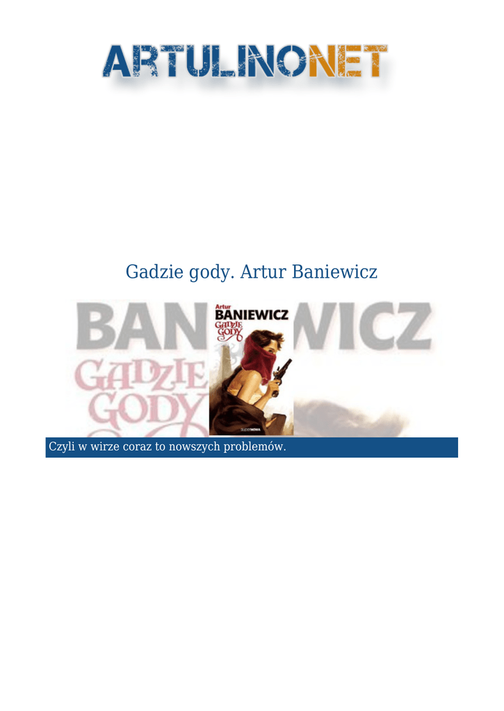 Gadzie gody. Artur Baniewicz Czyli w wirze coraz to nowszych problemów. Gadzie gody. Artur Baniewicz 2015-08-06 Czyli w wirze coraz to nowszych problemów. Czwarty tom sagi o Debrenia z Dumayki nie kontynuuje wydarzeń z poprzednich części. W „Gadzich Godach” będziemy mogli poznać przeszłość Debrena, który jako młodzieniec pilnie studiuje SOR na Wyspach Anvashu. Nudno mu jednak nie będzie. Problemy go od młodego lubiły i z chęcią spędzały mu sen z powiek. :-) Debren ma wakacyjne praktyki u mistrza iluzji Factorbiego. Został wysłany w jego zastępstwie do Małe Trickly. Małe miasteczko ma duży problem. Smoka, którgo oczywiście chce się pozbyć. Potrzeba do tego współpracy maga, a że mistrz Debrena nie mógł przyjechać, obowiązek ten spadł oczywiście na studenta Debrena. Rola jaką Debren ma spełnić nie podoba się wszystkim. Od wozobrońcy Boomhonsa dostaje ostrzeżenie aby lepiej znikał. Boomhons i jego kompania to groźni ludzie, ale nic dziwnego jak żyją z wojaczki. Z drugiej strony jest Amma dziwna dziewczyna. Wygląda trochę jak Temmozanka, od stóp do głowy okryta szatą, nie pierwszej świeżości. Nie mówi, porozumiewa się pisząc na glinianej tabliczce. Oprócz chęci aby Debren zabił smoka, chce aby młody mag uczynił ją… dziewicą. Powszechnie znanym faktem jest ten, że do ubicia smoka potrzebna jest dziewica. Powody na ubicia smoka Ammy i grodu są różne. Debren jest pośrodku tego i każdemu musi pomóc. Debren zmuszony jest wyruszyć z nią do smoka. Po drodze będzie dostawał lanie, uciekał, walczył i chował się. Będzie wesoło (pytanie tylko: komu? :-) ) Podczas podróży Amma i Debren napotkają całą plejadę innych, głównie tajemniczych, postaci – mecenasa Pirra zwanego Gruszką, elfa Keloalena z sokołem, krasnoluda, barona, pasterkę, gnoma Ruutena, pazernych wieśniaków, niemiłych sąsiadów, potwory, mutantów, owce. Duża większość z nich chce coś niemiłego zrobić Ammie, lub Debrenowi, ewentualnie obojgu naraz. Akcja jest bardzo szybka, czasami zwalnia aby dać wytchnienie bohaterom i czytelnikowi. Dużo się dzieje, są walki, ucieczki, magia. Autor jak w poprzednich tomach często daje aluzje do historii, polityki i popkultury. Naśmiewa się z systemu prawnego „metod obrony przez jurystów stosowanej”. www.artulino.net Artur Baniewicz rozwieje też trochę tajemnicę smoków, jak tak duże istoty potrafią latać, jaka była ich historia na Wyspach Anvashu. Co z tym mają wspólnego owce i dlaczego pewien szewc z dalekiego kraju mało nie wykończył ekonomi wysp. Mam też wrażenie że ilość aluzji do Wiedźmina mocno się zmniejszyła. Powieść została wydana ponad dziesięć lat po poprzednich tomach. Lekkim zaskoczeniem dla mnie było przeniesienie akcji do przeszłości. Z drugiej strony miło było poczytać jak Debren przeżywał swoje studia, jak od samego początku był wierny swoim ideałom, był i pozostał szlachetny. Jak kłopoty od zawsze przylegały do niego. Jako że oprócz Debrena nic nie łączy tej i poprzednich opowieści o Czarokrążcy można bez problemów ten tom przeczytać w pierwszej kolejności, co jak poprzednie tomy polecam. Artur Wyszyński www.artulino.net