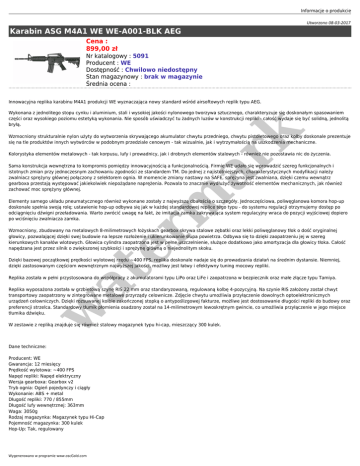 Karabin ASG M4A1 WE WE-A001-BLK AEG