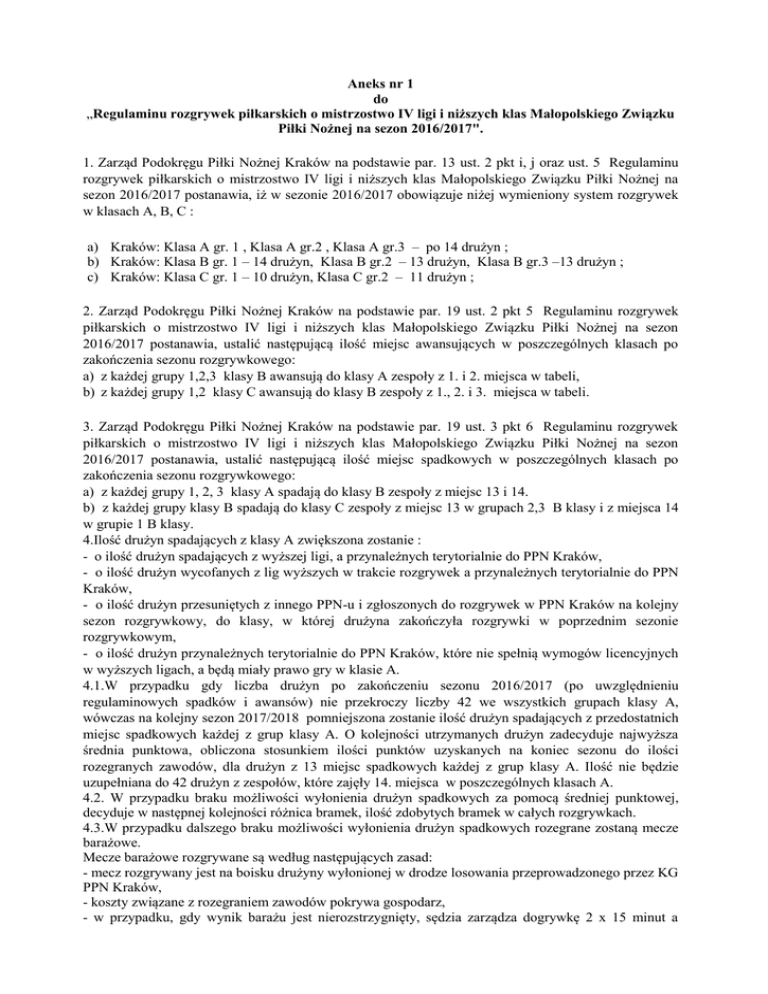 Aneks nr 1 do - Podokręg Piłki Nożnej Kraków