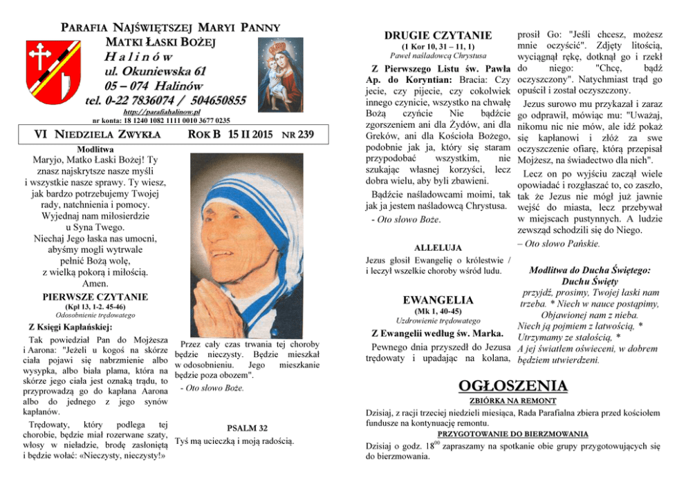 ogłoszenia - Parafia Najświętszej Maryi Panny Matki Łaski Bożej