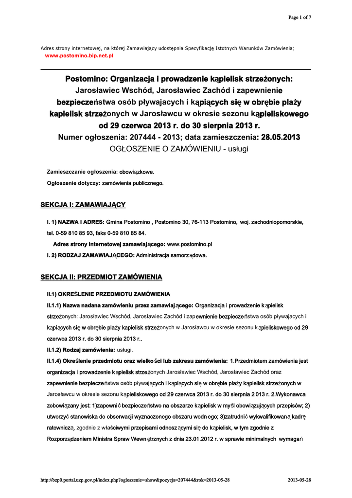 п¹» ï ±º é б-¬±³·²±æ Ñ®¹¿²·¦¿½¶¿ · °®±©¿¼¦»²·» µ °·»´·-µ -¬®¦» ±²§½¸æ Jarosławiec Wschód, Jarosławiec Zachód i zapewnieni» ¾»¦°·»½¦» stwa osób pływajacych i k °· ½§½¸ -· © ±¾® ¾·» °´¿ § µ¿°·»´·-µ -¬®¦» onych w Jarosławcu w okresie sezonu k °·»´·-µ±©»¹± ±¼ îç ½¦»®©½¿ îðïí ®ò ¼± íð -·»®°²·¿ îðïí ®ò Numer ogłoszenia: 207444 - 2013; data zamieszczeniaæ îèòðëòîðïí OGŁOSZENIE O ZAMÓWIENIU - usługi Zamieszczanie ogłoszenia: ±¾±©· ¦µ±©»ò Ogłoszenie dotyczy: ¦¿³-©·»²·¿ °«¾´·½¦²»¹±ò ÍÛÕÝÖß ×æ ÆßÓßÉ×ßÖ ÝÇ ×ò ï÷ Ò߯Éß × ßÜÎÛÍæ Ù³·²¿ б-¬±³·²± ô б-¬±³·²± íðô éêóïïí б-¬±³·²±ô ©±¶ò ¦¿½¸±¼²·±°±³±®-µ·»ô ¬»´ò ðóëç èïð èë çíô º¿µ- ðóëç èïð èë èìò ß¼®»- -¬®±²§ ·²¬»®²»¬±©»¶ ¦¿³¿©·¿¶ ½»¹±æ ©©©ò°±-¬±³·²±ò°´ ×ò î÷ ÎÑÜÆßÖ ÆßÓßÉ×ßÖ ÝÛÙÑæ ß¼³·²·-¬®¿½¶¿ -¿³±®¦ ¼±©¿ò ÍÛÕÝÖß ×׿ ÐÎÆÛÜÓ×ÑÌ ÆßÓMÉ×ÛÒ×ß ××òï÷ ÑÕÎÛ ÔÛÒ×Û ÐÎÆÛÜÓ×ÑÌË ÆßÓMÉ×ÛÒ×ß ××òïòï÷ Ò¿¦©¿ ²¿¼¿²¿ ¦¿³-©·»²·« °®¦»¦ ¦¿³¿©·¿¶ ½»¹±æ Ñ®¹¿²·¦¿½¶¿ · °®±©¿¼¦»²·» µ °·»´·-µ -¬®¦» onych: Jarosławiec Wschód, Jarosławiec Zachód i zap»©²·»²·» ¾»¦°·»½¦» stwa osób pływajacych i µ °· ½§½¸ -· © ±¾® ¾·» °´¿ § µ¿°·»´·-µ -¬®¦» onych w Jarosławcu w okresie sezonu k °·»´·-µ±©»¹± ±¼ îç ½¦»®©½¿ îðïí ®ò ¼± íð -·»®°²·¿ îðïí ®òò ××òïòî÷ α¼¦¿¶ ¦¿³-©·»²·¿æ usługi. ××òïòì÷ ѵ®» ´»²·» °®¦»¼³·±¬« ±®¿¦ ©·»´µ± ½· ´«¾ ¦¿µ®»-« ¦¿³-©·»²·¿æ ïòЮ¦»¼³·±¬»³ ¦¿³-©·»²·¿ ¶»-¬ ±®¹¿²·¦¿½¶¿ · °®±©¿¼¦»²·» µ °·»´·-µ -¬®¦» onych Jarosławiec Wschód, Jarosławiec Zachód oraz ¦¿°»©²·»²·» ¾»¦°·»½¦» stwa osób pływaj ½§½¸ · µ °· ½§½¸ -· © ±¾® ¾·» °´¿ § µ °·»´·-µ -¬®¦» ±²§½¸ © Jarosławcu w okresie sezonu k °·»´·-µ±©»¹± ±¼ îç ½¦»®©½¿ îðïí ®ò ¼± íð -·»®°²·¿ î ðïí ®ò îòɧµ±²¿©½¿ ¦±¾±©· ¦¿²§ ¶»-¬æ ï÷¦¿°»©²· ¾»¦°·»½¦» -¬©± ²¿ ±¾-¦¿®¦» µ °·»´·-µ © ³§ ´ ±¾±©· ¦«¶ ½§½¸ °®¦»°·--©å î÷ «¬©±®¦§ -¬¿²±©·-µ¿ ¼± ±¾-»®©¿½¶· ©§¦²¿½¦±²»¹± ±¾-¦¿®« ©±¼² »¹±å í÷¦¿¬®«¼²· ©§µ©¿´·º·µ±©¿² µ¿¼® ®¿¬±©²·½¦ , zgodnie z wła ½·©§³· °®¦»°·-¿³· ±¼²±-¦ ½§³· -· ¼± µ °·»´·-µô © ¬§³ ¦¹±¼²·» ¦ α¦°±®¦ ¼¦»²·»³ Ó·²·-¬®¿ Ͱ®¿© É»©² ¬®¦²§½¸ ¦ ¼²·¿ îíòðïòîðïî ®ò © -°®¿©·» ³·²·³¿´²§½¸ ©§³¿¹¿ ¸¬¬°æññ¾¦°ðò°±®¬¿´ò«¦°ò¹±ªò°´ñ·²¼»¨ò°¸°á±¹´±-¦»²·»ã -¸±©ú°±¦§½¶¿ãîðéìììú®±µãîðïíóðëóîè îðïíóðëóîè п¹» î ±º é ¼±¬§½¦ ½§½¸ ´·½¦¾§ ®¿¬±©²·µ-© ©±¼²§½¸ ¦¿°»©²·¿¶ cych stał µ±²¬®±´ ©§¦²¿½¦±²»¹± ±¾-¦¿®« ©±¼²»¹± øÜ¦ò Ëò îðïî °±¦ò ïðè÷å ì÷¦¿°»©²· stał µ±²¬®±´ ©§¦²¿½¦±²»¹± ±¾-¦¿®« ©±¼²»¹± °±°®¦»¦ ¦¿°»©²·»²·» trzyosobowych zespołów ratowników na ka ¼» ïðð ³ ´·²·· ¾®¦»¹±©»¶ µ °·»´·-µ¿ô © ¬§³ ½± ²¿¶³²·»¶ ¶»¼²»¹± ®¿¬±©²·µ¿ ©±¼²»¹± ±¼ -¬®±²§ ´«-¬®¿ ©±¼§å ë÷¦±®¹¿²·¦ ±©¿ °«²µ¬§ ³»¼§½¦²» ²¿ ±¾« µ °·»´·-µ¿½¸ ±®¿¦ ¦¿¬®«¼²· personel do obsługipunktów medycznych; 6)zabezpiec ¦§ · ©§°±-¿ § -¬¿²±©·-µ¿ ®¿¬±©²·½¦» ±®¿¦ °«²µ¬§ ³»¼§½¦²» © ²·»¦¾ ¼²§ -°®¦ t ratunkowy i medyczny (leki i artyku ły sanitarne, ¿ ¬¿µ » © °¿®¿-±´»ô °¿®¿©¿²§ · ´» ¿µ·÷ô ²¿¬±³·¿-¬ µ °·»´·-µ¿ © «®¦ ¼¦»²·¿ -§¹²¿´·¦¿½§¶²» · ±-¬®¦»¹¿©½¦»å é÷ «¬®¦§³§©¿ -°®¦ ¬ ®¿¬«²µ±©§ · ³»¼§½¦²§ © ²¿´» §¬§³ -¬¿²·» «³± ´·©·¿¶ cym jego stałe u §¬µ±©¿²·» · ¦¿°»©²·»²·» ¾»¦°·»½¦» -¬©¿ô ¦¹±¼²·» ¦ ±¾±©· ¦«¶ ½§³· °®¦»°·-¿³·ô ¿ © °®¦§°¿¼µ« ¶»¹± ¿©¿®·· ´«¾ ¦« §½·¿ - uzupełnia ¾®¿µ·å è÷©§®¿ ²·» ±¦²¿½¦§ ¹®¿²·½» µ °·»´·-µô © ®¿³¿½¸ µ¬-®§½¸ ±¦²¿½¦§ -¬®»º§ ¼´¿ «³·»¶ ½§½¸ · ²·»«³·»¶ cych pływa ±®¿¦ ¾®±¼¦·µ ¼´¿ ¼¦·»½· ¦¹±¼²·» ¦ α¦°±®¦ ¼¦»²·»³ Ó·²·-¬®¿ Ͱ®¿© É»©² ¬®¦²§½¸ ¦ ¼²·¿ ê ³¿®½¿ îðïî ®ò øÜ¦ò Ëò ¦ îðïî ®ò °± ¦ò îèê÷å ç÷¦¿°»©²· ¾·» ½ ·²º±®³¿½¶ ¼±¬§½¦ ½ ¬»³°»®¿¬«®§ ©±¼§ · °±©·»¬®¦¿ ±®¿¦ ©§-±µ± ci fali i siły wiatru; 10)ustawi ³¿-¦¬§ ©§°±-¿ ±²» © µ±³°´»¬ º´¿¹ ·²º±®³¿½§¶²§½¸å ïï÷¦¿°»©²· ·²º±®³¿½¶ ± ¼±°«-¦½¦¿´²± ½· ´«¾ ¦¿µ¿¦·» µ °·»´· © ³·»¶-½¿½¸ô © µ¬-®§½¸ µ °·»´ ¶»-¬ ²·»¾»¦°·»½¦²¿å ïî÷±½¦§-¦½¦¿ powierzchnie dna obszaru przeznaczonego do p ływani¿ ´«¾ µ °·»´· ¦ ©-¦»´µ·½¸ °®¦»¼³·±¬-© ³±¹ ½§½¸ -°±©±¼±©¿ -µ¿´»½¦»²·» ´«¾ ·²²§ ©§°¿¼»µå ïí÷ «°±©-¦»½¸²·¿ ¦¿-¿