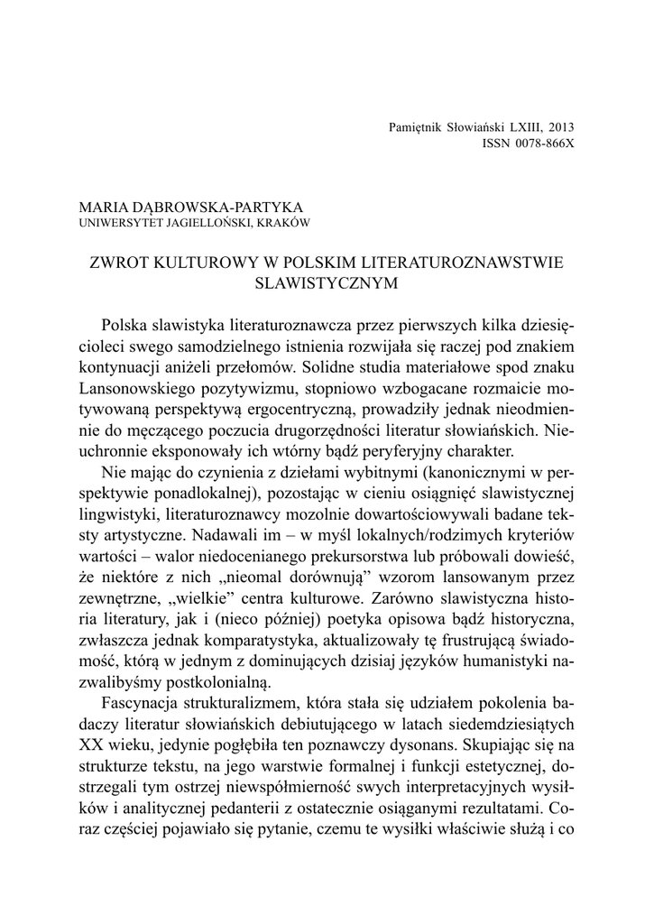 Zwrot kulturowy w polskim literaturoznawstwie slawistycznym