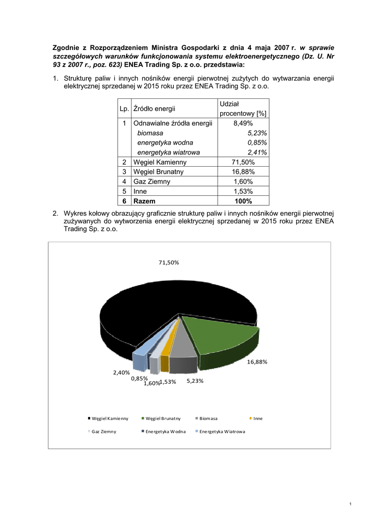 STRUKTURA PALIW 2015 ENEA Trading