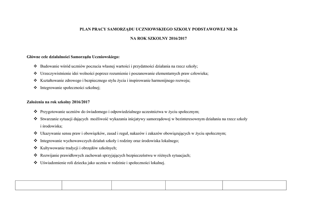 plan pracy samorzadu uczniowskiego szkoły podstawowej nr 26