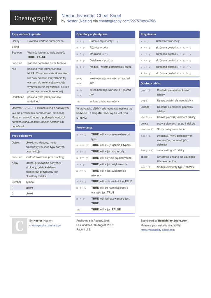 Nestor Javascript Cheat Sheet by Nestor