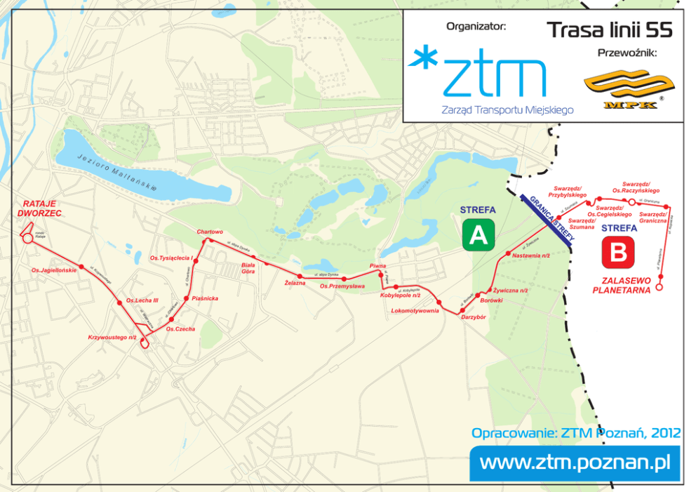 bin Cy Staw Kajka a Trasa linii 55 Organizator: Przewoźnik: R RATAJE DWORZEC STREFA Pia ś nic ul. a abp aD ka o Biała Góra wo us ul. Chartow Kr zy te go ul. abpa Dymka Os.Przemysława ul. Kobylepole Kobylepole n/ż wo rto a zn rac iat W ul. Lokomotywownia Ch a na B Piwna or .B ul ul. ul. Granicz a Swarzędz/ Os.Cegielskiego Swarzędz/ Swarzędz/ Graniczna Szumana STREFA z l. S na icz Nastawnia n/ż a Żelazna Piaśnicka Os.Lecha III Cy bin w Ży ul. Piwna ów Żywiczna n/ż ki ZALASEWO PLANETARNA Borówki Darzybór Os.Czecha ca Krzywoustego n/ż Opracowanie: ZTM Poznań, 2012 Piaśni Os.Jagiellońskie u l. ym Os.Tysiąclecia I ul. u A Chartowo rondo Rataje an um Swarzędz/ Os.Raczyńskiego cka Swarzędz/ Przybylskiego ul. Kupie k ie ul. Planeta rna ńs ta w ta rka iS o M al kla sk or Sz łyń zi M Je www.ztm.poznan.pl