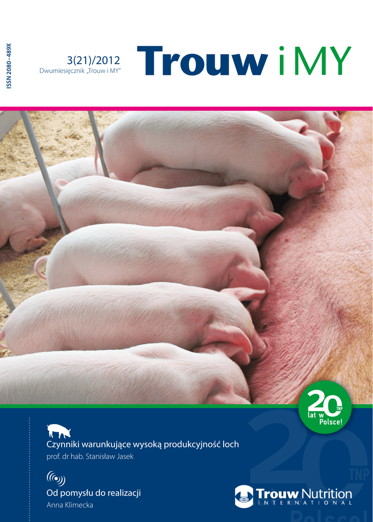 ISSN 2080–489X 3(21)/2012 Dwumiesięcznik „Trouw i MY” Czynniki warunkujące wysoką produkcyjność loch prof. dr hab. Stanisław Jasek Od pomysłu do realizacji Anna Klimecka 3 OD REDAKCJI Dwumiesięcznik „Trouw i MY” Szanowni Czytelnicy, 3(21)/2012 jak Polska długa i szeroka, większość pól pokrywa żółty kobierzec kwitnącego rzepaku. Oby aura sprzyjała rolnikom, by zbiory były obfite, by w efekcie podopieczne zwierzęta cieszyły się dobrą, wysokogatunkową karmą. W obecnym numerze „Trouw i MY” opowiemy o czynnikach warunkujących wysoką produkcyjność loch i o szczególnej opiece nad krowami w okresie okołoporodowym. Przedstawimy sylwetki najdłużej zatrudnionych osób w Trouw Nutrition Polska. Zamkniemy cykl artykułów dotyczący chorób układu oddechowego drobiu. Wspólnie odwiedzimy gospodarstwo rolne PARTNER w Rusiborzu, gdzie pomysły są realizowane w tempie godnym pozazdroszczenia. Gorąco Państwa zachęcam do lektury naszego biuletynu. dr Jolanta Gdala Z ŻYCIA TNP To już 20 lat! Anna Klimecka Martin&Jacob Sp. z o.o. Rozliczenia podatków to rzecz, która nie ominie żadnego człowieka, a już z pewnością żadnego przedsiębiorcy. Dział księgowości jest bardzo ważnym elementem, ponieważ tam księgowi zajmują się wszystkimi sprawami, bez których żadna firma nie byłaby w stanie dobrze funkcjonować. Precyzując zakres prowadzonych w jego obrębie działań, można stwierdzić, że dział księgowości zajmuje się gromadzeniem dokumentacji księgowej i jej archiwizacją, sporządzaniem bilansów finansowych oraz rozliczaniem delegacji służbowych. Pracownicy działu przygotowują i realizują sprawozdania finansowe firmy. Podstawowym celem działu księgowości jest optymalizacja działań firmy pod względem ekonomicznym. Wydawca: Trouw Nutrition Polska Sp. z o.o. ul. Chrzanowska 21/25 05–825 Grodzisk Mazowiecki telefon: +48 22 755 03 00 fax: +48 22 755 03 72 14 18 www.trouwnutrition.pl SPIS TREŚCI Redakcja: 03 Anna Klimecka Martin&Jacob Sp. z o.o. Szczególna opieka nad krowami po wycieleniu prof. dr hab. Stanisław Jasek 10 Idea zrównoważonego rozwoju 11 12 ul. Fabryczna 14 D, 53–609 Wrocław www.martin-jacob.com Nakład: 5000 egzemplarzy przeprowadził ze mną ówczesny dyrektor go, ale pracowałam w Warszawie. Codzien- finansowy – Gilbert Heith. Pracę zaczęłam ne dojazdy do pracy były bardzo męczące. następnego dnia. Wolne popołudnia, wolne Anna Przygoda jest pracownikiem działu W zasadzie moje życie polegało na pracy weekendy, bardzo sympatyczni ludzie, tacy księgowości. Trafiła na fajnych ludzi, nie pla- i dojazdach. W styczniu 1993 roku znalazłam do rany przyłóż – poczułam się jak ptak wy- nuje zmian. Opowiedziała Annie Klimeckiej ogłoszenie w gazecie: „nowo powstająca puszczony z klatki. Na początku byłam i księ- swoją historię firmy TNP. firma poszukuje księgowej”. Tego właśnie gową, i kasjerką. Dziś dział księgowości stano- Pani Aniu, jak to się stało, że zaczęła Pani szukałam, pracy na miejscu, bez uporczy- wi pięć osób. Każda z nas potrafi zrobić to, co pracować w TNP? wych dojazdów. Rozmowę w sprawie pracy może inna. To dobry układ, wszystko składa się na doskonałą całość. Zajmuję się księgowaniem faktur dotyczących bezpośrednio surowców związanych z produkcją, wyjaśnia- Choroby układu oddechowego ptaków (część 2) niem niezgodności, oraz pozostałych kosztów zewnętrznych, zakupów, a od 1 maja dr Mariusz Urbanowski 2004 roku prowadzę również INTRASTAT, czy- 20 li przekazuję organom celnym, w wymaga- Agrociekawostki nej formie i w określony sposób, informacje na temat obrotu towarowego z państwami 21 Przekazanie drzewek bonsai, symbolu TNP polityki zrównoważonego rozwoju Opracowanie: Jestem mieszkanką Grodziska Mazowieckie- 18 dr hab. inż. Maciej Adamski Uniwersytet Przyrodniczy we Wrocławiu dr hab. inż. Maciej Adamski Martin&Jacob Sp. z o.o. prof. dr hab. Stanisław Jasek Uniwersytet Przyrodniczy we Wrocławiu 06 REDAKTORZY NAUKOWI: dr Mariusz Urbanowski Czynniki warunkujące wysoką produkcyjność loch To już 20 lat! Redaktor naczelna: dr Jolanta Gdala 14 Praca, która stała się pasją Technowinki Jak Pani widzi rozwój firmy TNP na przestrzeni lat? Jaki w tym udział działu księ- 22 gowości? Wcześniej siedziba firmy mieściła się w dwóch Szparagi – źródło witamin i niezbędnych minerałów Od pomysłu do realizacji Anna Klimecka Martin&Jacob Sp. z o.o. członkowskimi Wspólnoty. pokojach wynajmowanych od Polfy przy uli- 23 Krzyżówka szparagowa ZAMÓW BEZPŁATNĄ PRENUMERATĘ „Trouw i MY” ZADZWOŃ: 71 792 06 90 NAPISZ: [email protected] cy Świeżej. Dziś mamy olbrzymią infrastrukturę, stale się rozwijającą. Na początku firma nazywała się Ewos, później przekształciła się w Ewos Polfarm, potem Polfarm. Dzisiaj funkAnna Przygoda – pracownik działu księgowości Trouw Nutrition Polska cjonujemy pod nazwą Trouw Nutrition Polska. Patrzę w przeszłość z nutką nostalgii, 4 5 Z ŻYCIA TNP tęsknię za rodzinną atmosferą. Teraz też jest obsłużonych, jaki czas to zajęło. Ustalamy dobrze, ale kiedyś było sympatyczniej. Bar- prognozy na przyszłość. dzo by się przydały spotkania integracyjne, Czy rozwój firmy był czymś spektakularnym? które wprowadziłyby wiele świeżego powie- Widzę olbrzymią różnicę między tym, co za- wu i energii. Takie spotkania świadczą o tym, stałem na początku mojej pracy, a tym, czym że tych ludzi się po prostu lubi. Prezes Jurgen dysponujemy dzisiaj. W krótkim czasie po Verkuyten pchnął firmę do przodu, firma połączeniu z Nutreco w firmie dokonało się bardzo dobrze sobie radzi, nawet w dobie wiele przekształceń – zaczęliśmy pracować kryzysu. Wszyscy wiedzą, że mądrzy rolnicy korporacyjnie, zmieniły się metody pracy. właśnie w kryzysie inwestują. Następowała coraz większa integracja syste- Co jest najw