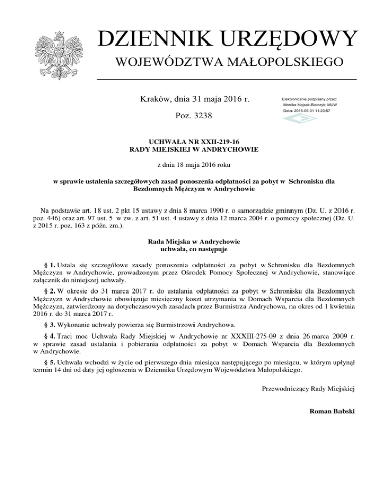 DZIENNIK URZĘDOWY - Ośrodek Pomocy Społecznej w Andrychowie